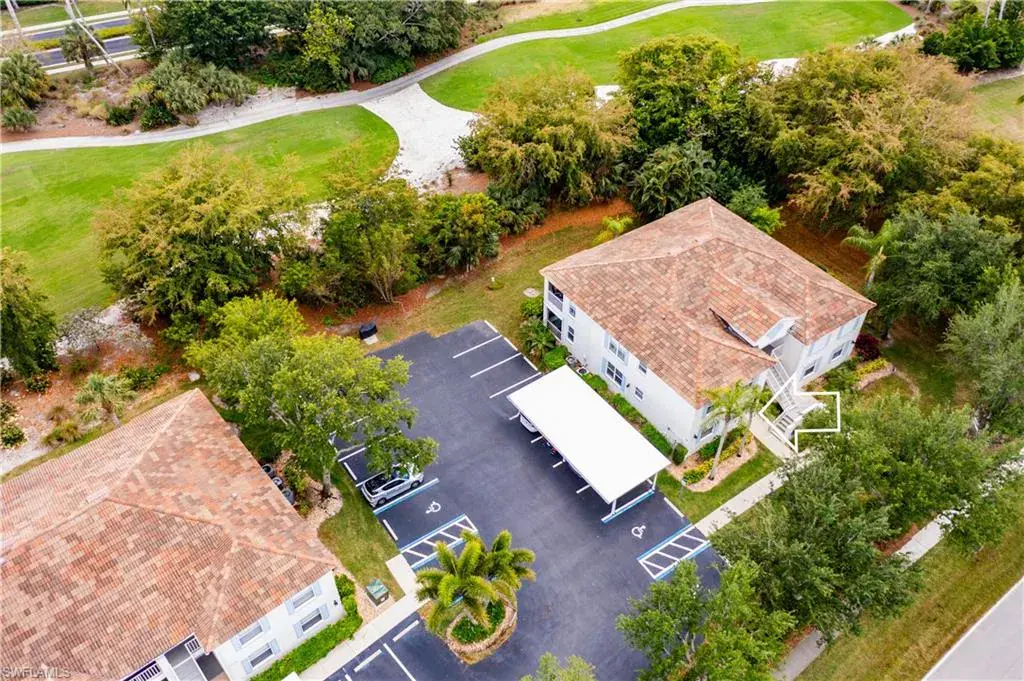 Paradise awaits you at this spacious, light, and bright 3 Bed/ 2 Bath condo. Enjoy the privacy that this 1st floor end unit offers. This condo conveys with one carport parking spot which is conveniently located just outside the property. This property offers soaring vaulted ceilings throughout and a canvas ready for one to make their own. The AC and water heater have both been recently updated. The screened lanai offers additional storm protection with the electric shutters that close. Furthermore, enjoy daily lush views of preserve that backup right to the Hammock Bay golf course! Enjoy this fantastic location just miles to Marco Island and downtown Naples. The community pool is an added plus!