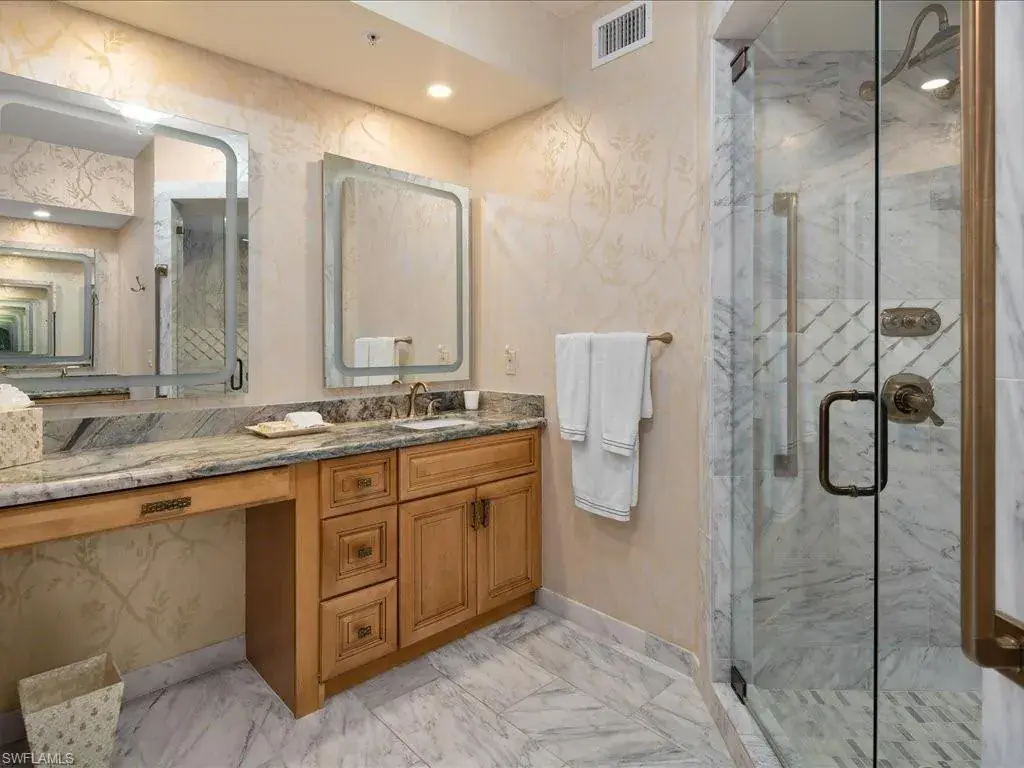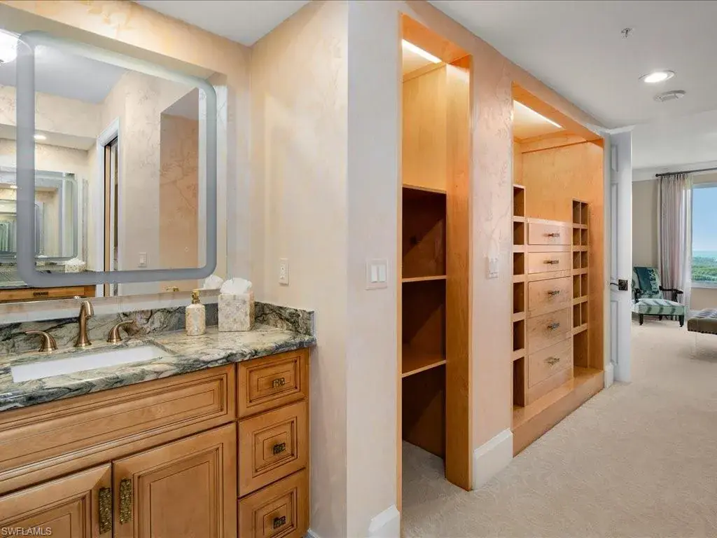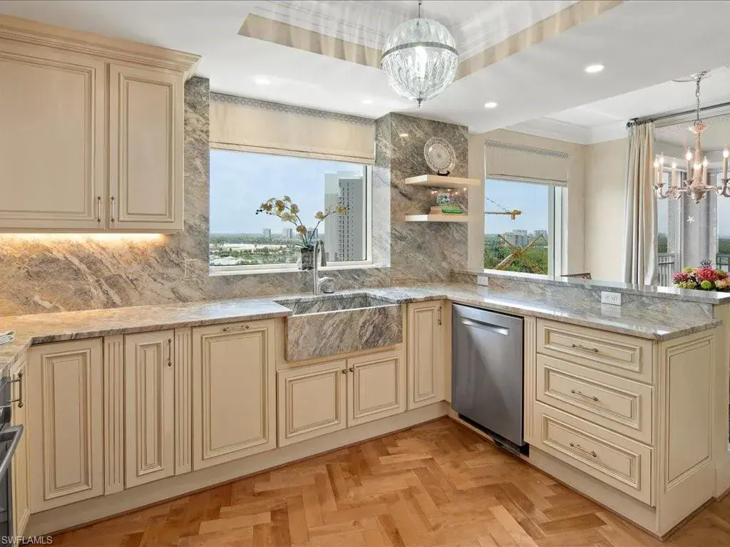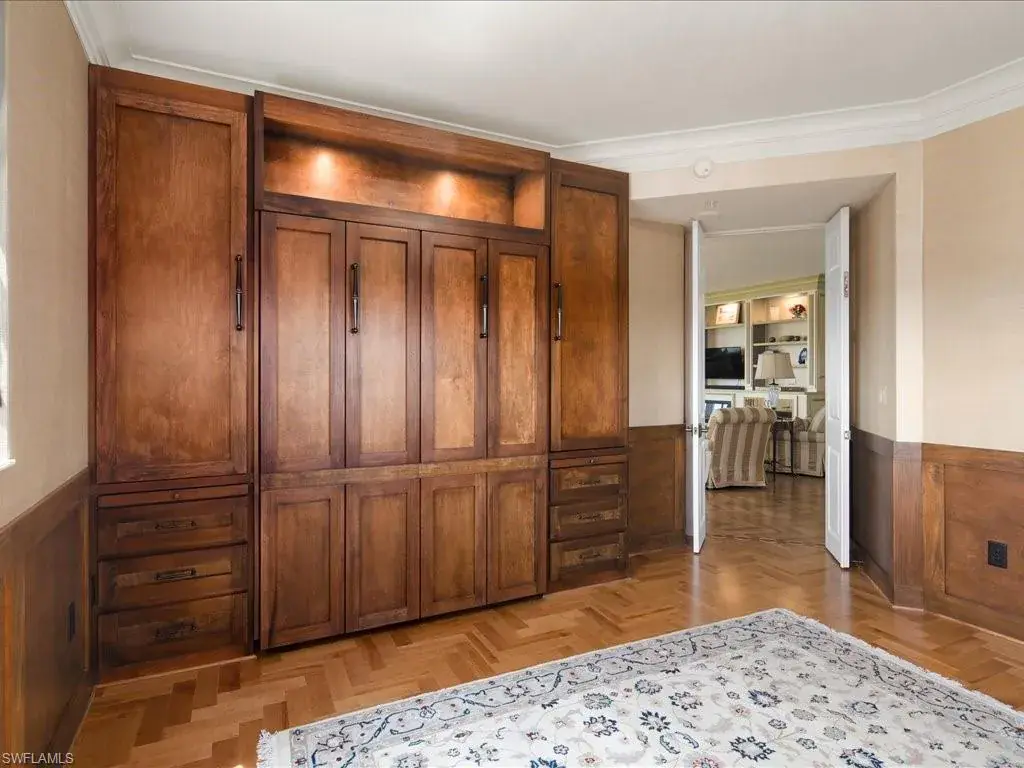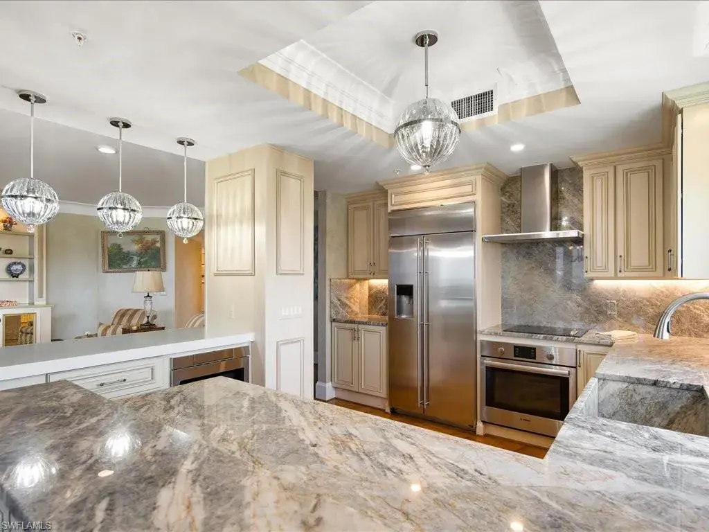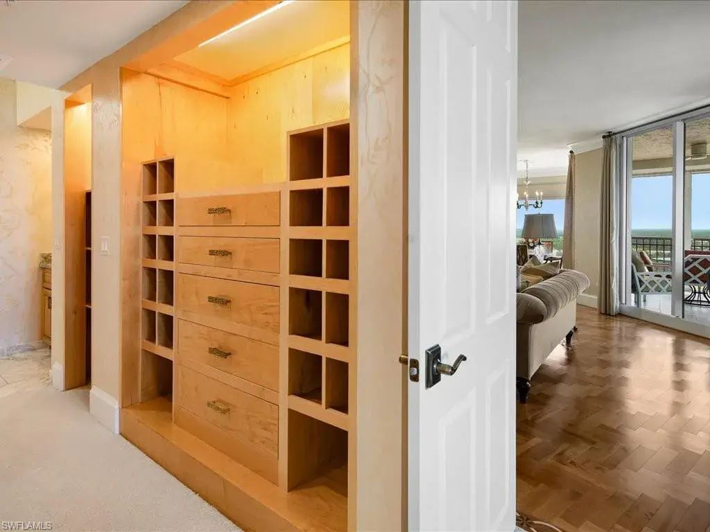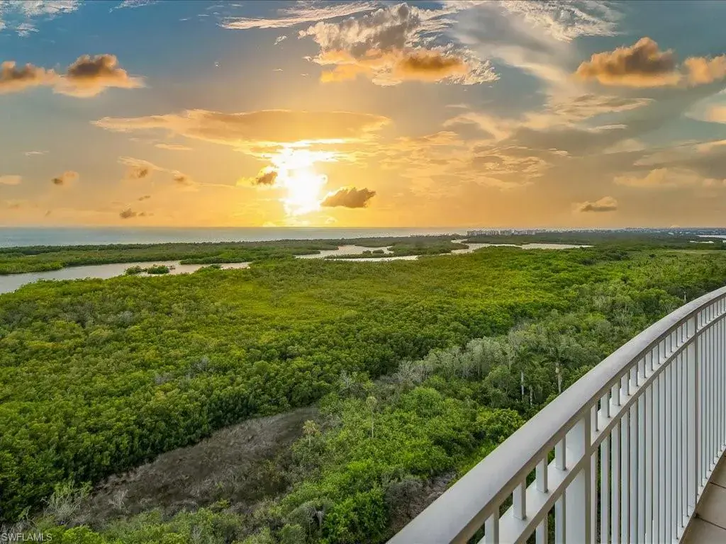 Presenting #1101 in Tower Pointe in the amenity-rich, 55+ Active Senior Community of Arbor Trace. This luxurious, three bedroom, 2.5 bath end unit located in the coveted ’01 stack with Southwest exposure, features panoramic, unobstructed vistas of Little Hickory Bay and the Gulf of Mexico. A one-year labor of love by Foxworthy Interiors completed in 2018, this impressive 11th story sky residence was totally and extensively renovated from top to bottom with high level finishes to the tune of $400,000 with no stone left unturned and no corners cut, and curated with an eye towards ageless elegance. Custom moldings throughout including beautiful wood floors with custom inlays. The great room is warm and inviting with a custom lighted wall unit including electric fireplace. The well-appointed kitchen was opened to the living room and features custom cabinetry, granite and porcelain counter tops, farmer’s sink, Bosch/GE Monogram stainless-steel appliances including wine cooler. Large, private master retreat with superb bay/gulf views, impressive custom closet system and quality master bath that will surely pamper the most discerning of owners. The third bedroom with built-in closet system and murphy bed could also be used as an office/den/study. NEW in 2023/2024: Trane HVAC with medical grade air filtration system, water heater with water filtration system, Electrolux washer and dryer, Fabrica sculptured wall-to-wall carpet in the master retreat, Delta kitchen faucet and lanai screening. There are also electric window blinds on the kitchen and dining room windows as well as electric hurricane shutters on the lanai. This unit also comes with extra air-conditioned storage as well as a one car garage. Arbor Trace is a pet friendly 55+ active independent adult living community. Feel as though you are on vacation every day with wonderful amenities that include heated pool/spa, fitness center, card room, library, billiards room, bocce ball, pickleball, active social calendar, hair salon, two guest suites, movie nights, 17th floor club as well as 36,000 sq. ft. clubhouse with on-site fine dining. Additional services include local transportation, housekeeping, and 24 hour emergency monitoring for peace of mind. This tasteful residence is one you will feel proud to own. Even the lovely art and furnishings are negotiable. Also be sure to inquire about the future option to move to the adjacent Assisted Living Property at Arbor Glen if future planning requires. Active, independent adult living never looked this great!