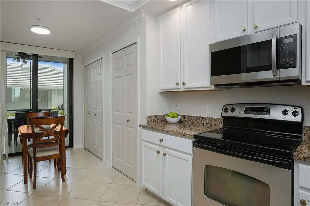 HOME WARRANTY INCLUDED WITH PURCHASE! Stunning first-floor Veranda in premier North Naples Golf Community – Welcome to your dream home in one of North Naples’ most sought-after 27-hole bundled golf course communities! No waiting to get on the course. This immaculate first-floor condominium offers the perfect blend of luxury, convenience, and breathtaking natural beauty. With two spacious bedrooms, a versatile den, and two well-appointed bathrooms, this residence is designed for comfort and style. Step inside to find a beautifully decorated interior, featuring a cool neutral color palette and freshly painted white cabinetry that exudes elegance and warmth. Natural light floods the space thanks to its desirable southern rear exposure, creating a bright and inviting atmosphere. Enjoy serene views of lush tropical landscaping, dense nature preserves where you may even catch glimpses of majestic wildlife. Meticulously maintained and being sold turnkey, this home is ready for you to move in and start enjoying the Florida lifestyle. With a detached garage and a new HVAC system (2022), you’ll have both comfort and convenience at your fingertips. The WiFi keyless entry system adds an extra layer of ease, allowing access for service technicians, renters, or guests whenever you need it. As a resident, you’ll have access to luxurious resort-style amenities and the guidance of a full-time activities director, ensuring there’s always something to engage in. Take a dip in the recently renovated main pool with beach entry, challenge friends to bocce ball, tennis, or pickleball, or stay fit in the state-of-the-art fitness center. With a variety of classes and social groups, there’s no shortage of opportunities to meet new friends and enjoy life to the fullest. Indulge in a delightful dining experience with multiple options available in the community, including the recently renovated Cabana Bar and Grill, the inviting Grill Room, or the elegant formal dining room. Ideally located in a booming section of North Naples, you’re just minutes away from medical facilities, shopping, dining, and entertainment. With easy access to I-75 exit 111 and approximately 8 miles to the stunning Gulf Beaches, you’ll enjoy the best of both convenience and coastal living. Don’t miss your chance to embrace a vibrant lifestyle in this exquisite condominium. Interested in investing in a rental property? This association allows 12 rentals per year with 30 day minimum. In-season rental rates are very impressive! This condo is ready for immediate occupancy. Schedule your private tour today and discover the perfect blend of luxury, leisure, and the beautiful Florida sunshine!