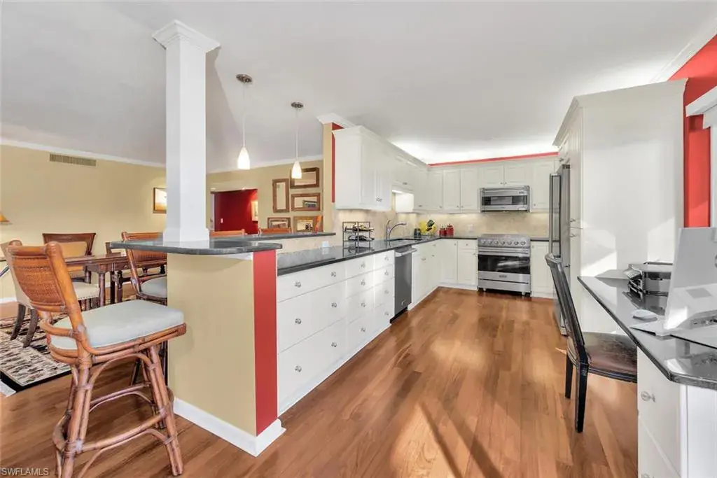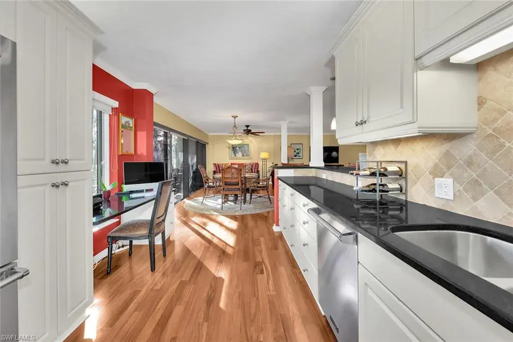 Top floor 2-bedroom 2 bath condominium with no noise from above facing east with beautiful evening moonrises from the 9th golf green. IMMEDIATE FULL GOLF MEMBERSHIP AT CLOSING. Members will enjoy a newly constructed State-of-the-Art 5 Star multimillion dollar Clubhouse and practice facility. This unit is situated closest to the clubhouse with the shortest walk. Enjoy the custom upgrades including hard wood flooring, raised white panel cabinetry, stainless steel appliances, modern bathrooms, plantation shutters and much more. Golf cart and cart garage are included and located adjacent to your assigned covered car parking. This gated paradise is set within a 200-acre forest with stunning landscaping and mature trees overhanging roadways. It offers unlimited golf on an 18-hole Arthur Hills course, 5 Pools, 4 tennis courts, bocce, croquet, and a dog park. It’s located just minutes away from charming shopping and dining at 5th Avenue and Old Naples. Purchase of a Wilderness Country Club membership is required and immediately available.