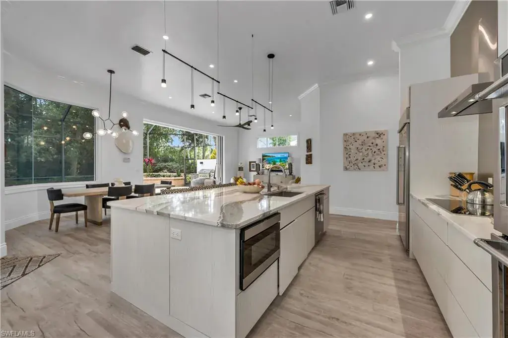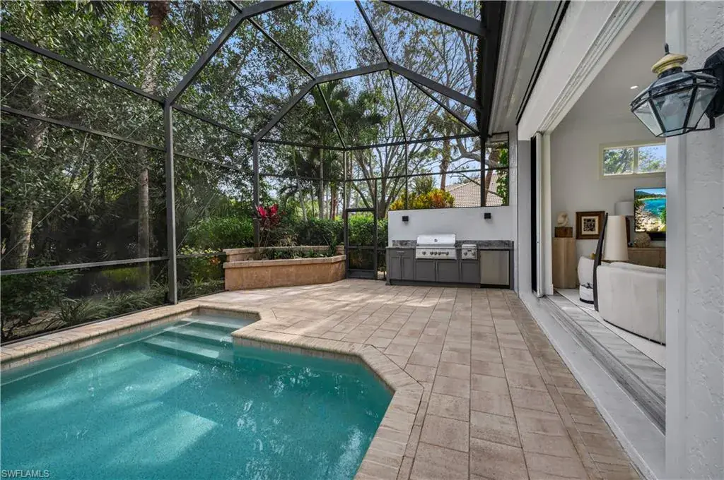This beautifully renovated and re-imagined 3 bedroom + private den, 4 full bath home in Colliers Reserve Country Club emanates a casual elegance. Attention to detail abounds from the moment you enter this magnificent residence, including an all-new kitchen and relaxing spa baths. A gas-heated, 38-foot lap pool and connected spa compliment the outdoor kitchen that provides a comfortable space to entertain and relax. Virtually everything is new from top to bottom within the past two-and-a-half years, including a new roof, two water heaters and two A/C systems. The third garage bay offers an air-conditioned bonus space for storage or workshop space. This home also features 10-foot sliders, 14-foot ceilings, motorized hurricane screens and a prime office space next to a full fourth bath that offers extra sleeping room for guests. Colliers Reserve offers natural beauty and wildlife, championship golf, tennis and pickleball, in an exclusive community of only 226 single family homes. Immediate sports and social membership is available with priority placement on the golf membership wait list (average wait time in 2023 was 5-weeks). Riverfront dining and a gorgeous club make this one of the most sought after communities in Naples.