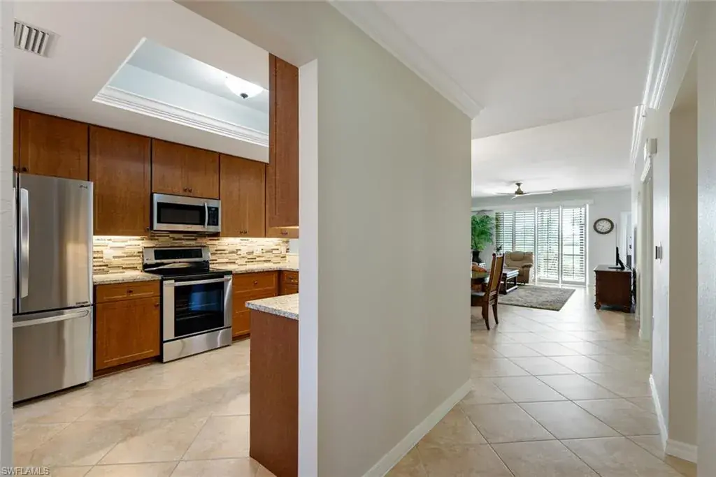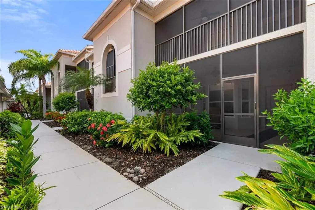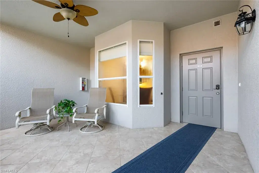 Golf membership included! Move-in ready 2BR + den, 2BA “Abbey” end unit at Heritage Bay, located on the first floor. Enjoy breathtaking sunrises behind a gorgeous golf course (overlooking the 12th hole) and water view in this Veranda condo, being sold turnkey. New carpeting in both bedrooms and den. Interior painting completed (March 2024). New lighting fixtures throughout as well as new kitchen sink, faucet and disposal. In addition, there is a wine fridge and new Bosch dishwasher. Under cabinet lighting in kitchen. Plantation shutters on sliders leading out to lanai. Hunter Douglas window treatments throughout condo. Resort-style pool & full service outdoor restaurant makes living at Heritage Bay feel like a vacation everyday. The 27,000 square foot clubhouse features a Grille Room with a view of the 27th green. Heritage Bay also features a resort style pool, 5 sattellite pools throughout the community, tennis courts, a fitness center, full-time activities director and social calendar, pickleball, bocce & more! The special assessment for the amenities has been paid in full. Located in a prime location, about 30 minutes from SWFL beaches and downtown 5th Avenue, this condo at Heritage Bay is a wonderful place to call “home”.