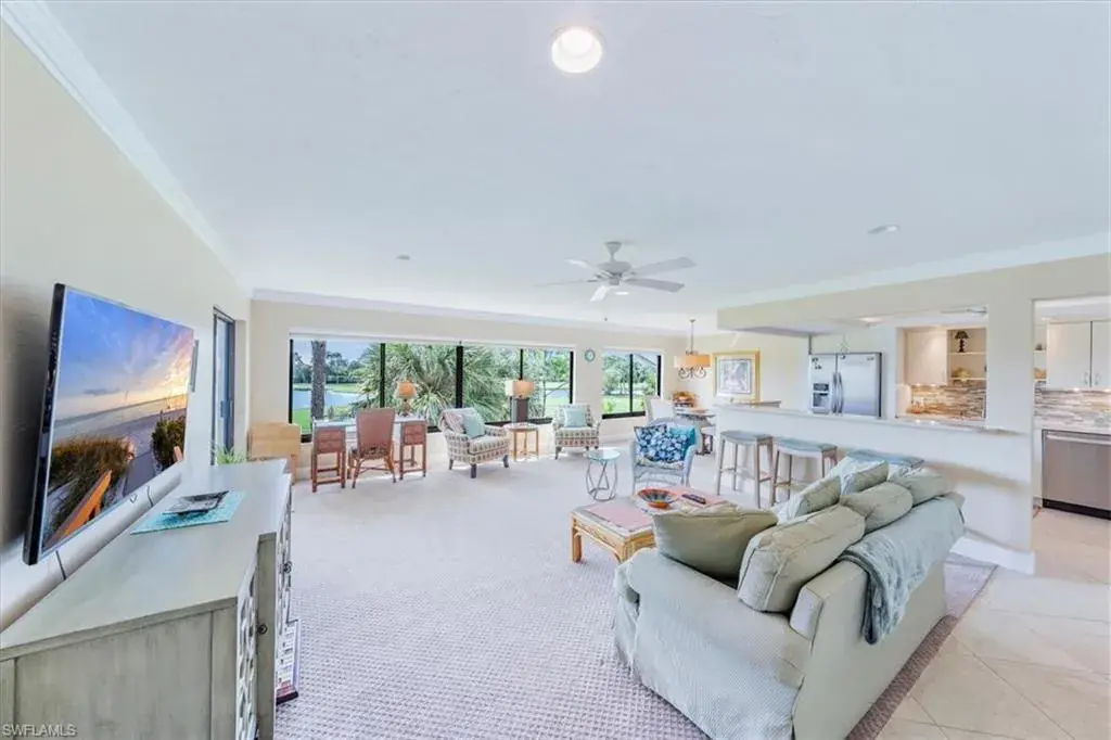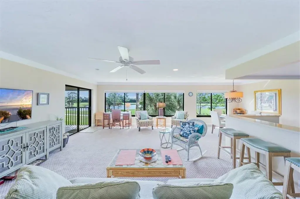 C13872 Just Bring Your Clubs and Enjoy!!! Top-Floor Turnkey Furnished 2-Bedroom 2-bath condominium with over 41 feet of panoramic forever Golf Course and Lake Views!!! IMMEDIATE FULL GOLF MEMBERSHIP AT CLOSING. This impeccably maintained unit features newer cabinetry and built-ins, granite and quartz countertops in kitchen and bathrooms, an open floor plan, stainless-steel appliances, Pottery Barn Master Bath Vanity, solid wood shaker doors and screened in porch to enjoy the outdoors. Located in an elevator building. COVERED PARKING, golf cart garage and of course the golf cart is included. BEARS PAW has a Fantastic in town location with a State-of-the-Art clubhouse and fitness center, JACK NICKLAUS SIGNATURE GOLF COURSE, bocce courts, pickleball, tennis courts, dog park, driving ranges, two putting greens and private marina with GULF ACCESS. Bear’s Paw is gated and manned 24-hours, walking/bike path to downtown Naples, less than three miles to the beach and located in the City of Naples. The golf membership is mandatory and in addition to the real property. Just move in and enjoy the Bears Paw Lifestyle.
