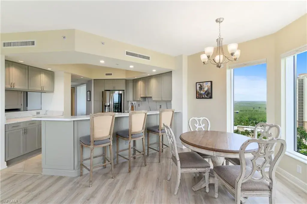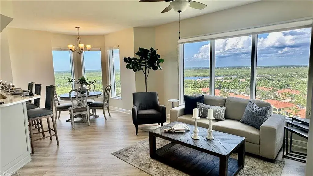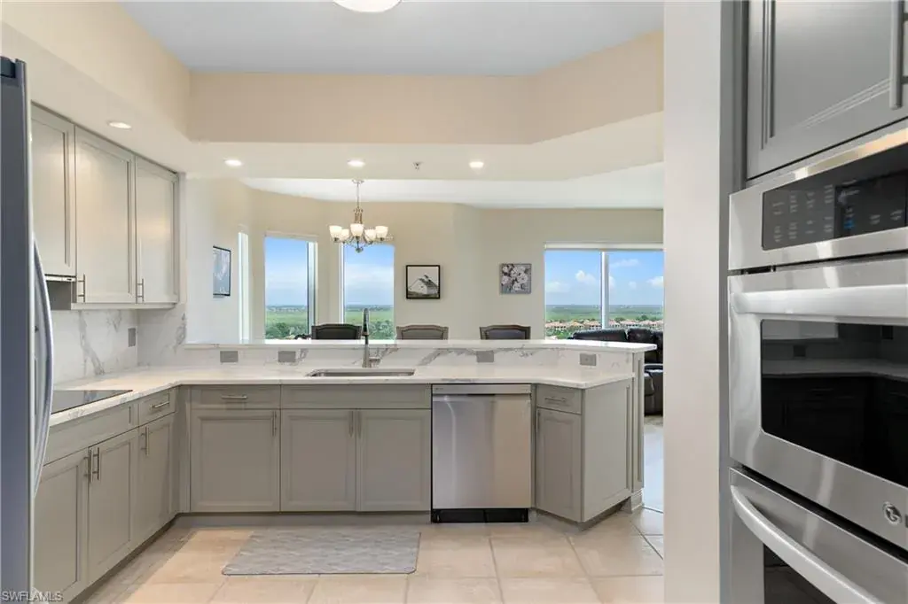 SOCIAL MEMBERSHIP transferable in this STUNNING LIGHT AND BRIGHT largest condominium in Aversana. Enjoy the WORLD famous Hammock Bay Country Club amenities and AVOID the long waitlist. Featuring two country clubs with golf privileges, tiki hut, several dining areas located at Hammock Bay & The Rookery @ Fiddler’s Creek, tennis, bocce ball, cabanas, daily access to the Marriott spa, restaurants and beach club w/ SPECIAL members section. This spectacular highly upgraded furnished sky-home has trendy stunning flooring through out. Boasting a gourmet kitchen with GORGEOUS quartz countertops, top of the line cabinetry & new appliances. Primary bath features a large shower, separate tub & beautiful marble counter tops. Split floor plan features two large en suite bedrooms. Complete w/ electric storm shutters on lanais. This premier building lifestyle is hard to duplicate. Enjoy the outdoor pool/hot tub, outdoor gathering room & grills. Social room w/pool table, theater, & state of the art fitness center. Car condo w/ two parking spots below the building w/secure gates. Two guest suites located in the building. Located perfectly between downtown Naples & Marco Island