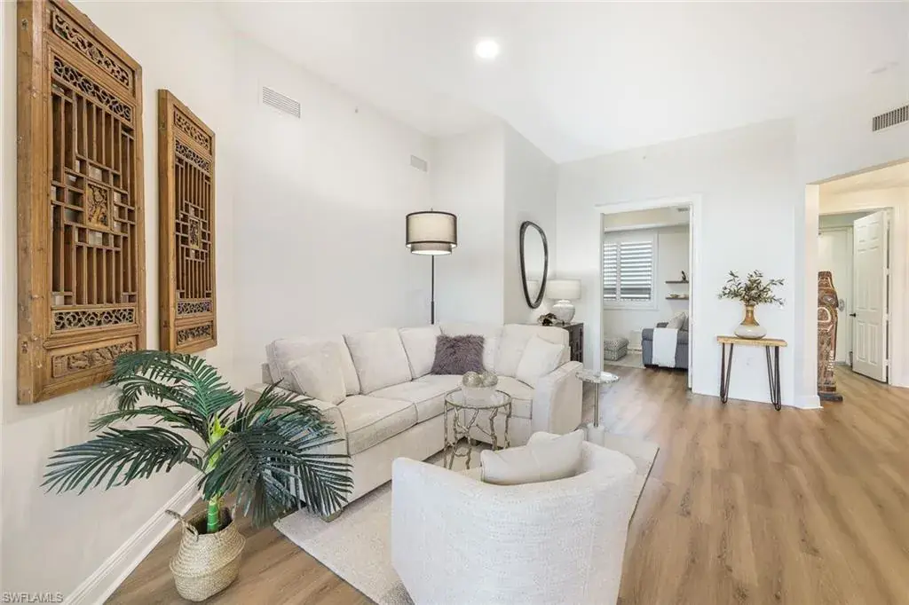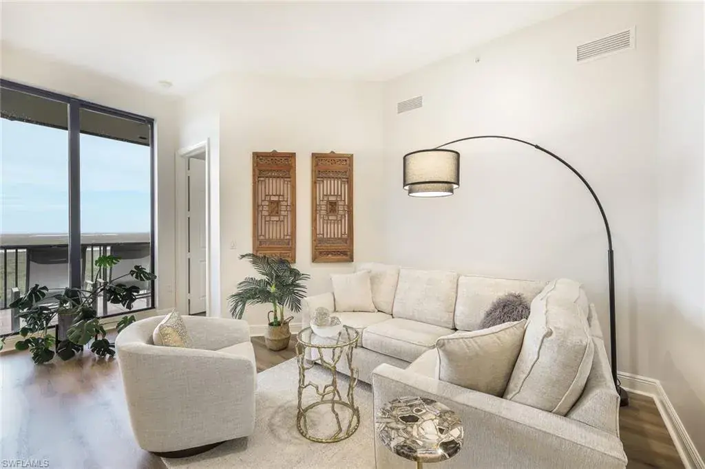 Luxurious living and Breathtaking views from this Serano Penthouse at Hammock Bay is just a start. The moment you exit the secured elevator you’re greeted by your private foyer that says Welcome Home! Upon entering this 3 bedroom, 2 bath Penthouse the first thing you’ll notice is the high 11 ft ceilings, open floor plan, stunning furnishings and how light and bright it is. (3rd Bedroom is setup as a den). This Professionally decorated Penthouse is Furnished/Turnkey. The kitchen was remodeled last year with new Quartz countertops with matching backsplash and all new flooring through-out. The stainless-steel kitchen appliances, A/C, and water heater were all replaced 3 years ago. Panoramic views from you screened lanai overlook the bay and Gulf of Mexico making it easy to sit back, relax and watch the stunning Sunsets. It’s time to enjoy that resort style living in this gated community with unbelievable amenities including a theater, social room, fitness center, resort-style pool & spa, grilling area, guest suites, covered parking, extra storage and more. Who said Dreams don’t come true, it’s time you live in this Serano Penthouse and enjoy this luxurious lifestyle.