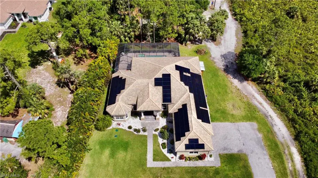 Stunning 5 bedrooms, den/study, 4 full bath Estate Home with 3-car garage on Uplands, situated on 2.73 wooded acres. Custom features throughout include 12ft ceilings, 8ft doors, crown molding, tile floors, hand scraped hardwood floors, architectural windows & doors. Tesla SOLAR power (with warranty) perfect for heating your pool, charging your car, running your Triple Zoned A/C system all while keeping your electric costs below $50/month! The gourmet kitchen is finished with 42” solid wood cabinetry complimented by granite counters, professional series stainless appliances from Kitchen Aid and Jenn-Air, wet bar with sink, pass thru window to lanai & generous walk-in pantry. Luxurious primary bath with dual sinks, custom vanities, separate soaking tub & shower with frameless glass enclosure. French doors invite to the expansive screened lanai, an ideal setting for entertaining and relaxation featuring a custom built sparkling pool & spa surrounded by lush tropical landscaping.