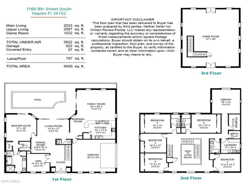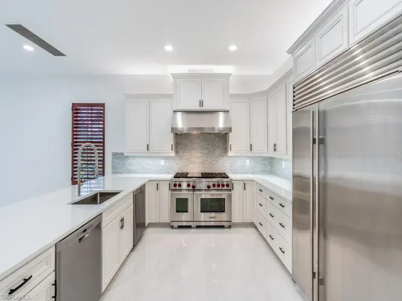 Exceptional Value in the Heart of Olde Naples. Gracefully designed, this home blends refined private living spaces with timeless elegance, all set in an exceptional location just moments from the Gulf, 5th Avenue South, and Crayton Cove. With almost 6,000 square feet of living space, this expansive 6 bedroom, 4.5 bathroom home features soaring ceilings, a private den, library, and a stunning third-floor bonus room perfect for entertaining or relaxing in total privacy. The gourmet kitchen is a chef’s dream, outfitted with Sub-Zero and Wolf appliances, dual dishwashers, and a spacious walk-in pantry. A dramatic two-story foyer is crowned by an imported chandelier and leads to an elegant second-floor mezzanine, framed by grand staircase and solid mahogany doors throughout. The private backyard oasis showcases a heated saltwater pool with tranquil water feature, surrounded by lush landscaping and mature trees. From the third-floor terrace, enjoy the impressive birds eye view while watching the City of Naples fireworks. A one of a kind experience from the comfort of your own home. Located in the heart of Olde Naples, within walking distance to Naples’ finest beaches, dining, and shopping, this fully remodeled home is move in ready and delivers the best of downtown luxury living. Additional highlights include a garage ceiling height ready for car lift installation and multiple flex spaces including exercise room, family room, and media room. A true Olde Naples gem that combines size, value, and sophistication in one of the city’s most coveted neighborhoods. A must see!