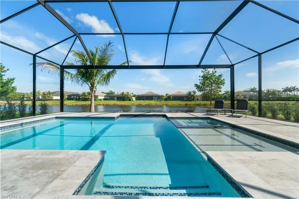 Exquisite and spacious, this 4-bedroom, 3-bathroom home boasts a resort-style commercial pool and spa and a 3-car garage. Luxuriously upgraded, fully furnished, and tastefully decorated, it is perfectly situated on a lot with sparkling lake views, perhaps the best lot at Valencia Trails. Bring only a suitcase and a key to enjoy this one-of-a-kind impeccable home. Do you have a cook in your family? The designer kitchen, equipped with natural gas, will not disappoint! An oversized island with seating is open to the living area and offers a beautiful view of your private yard overlooking the lake, made even more enjoyable with the addition of invisible screens on the lanai, perfect for capturing the views. Experience the ultimate Florida lifestyle in the gated community of Valencia Trails, where amenities abound, and the opportunities for living your best life are endless. With a 43,000 sq. ft. clubhouse, a 10.7+ acre recreation complex, and miles of scenic walking trails, you can indulge in your favorite leisure activities. Swim in the pool, gather with friends for lunch, play pickleball with neighbors, join a game of poker, or enjoy a Broadway-style show. The possibilities for living the life you’ve always dreamed of are endless at Valencia Trails!
