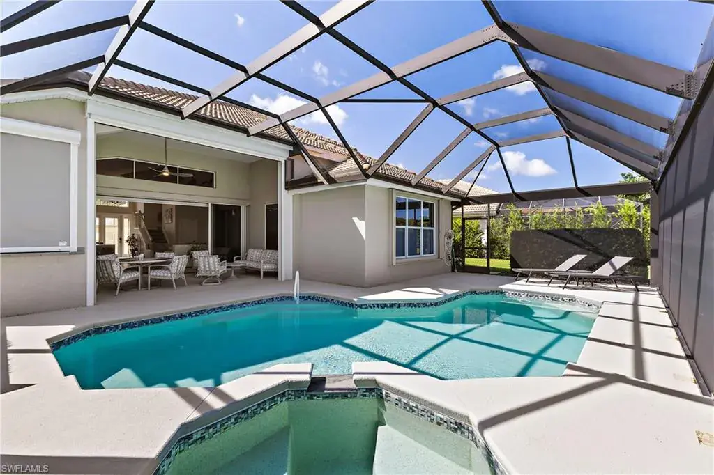 Step outside to your private oasis, with a panoramic screened pool area offering sweeping views of the 9th Hole of the Eagle golf course. Control your Pool & hot tub remotely with the Aqualink control App.