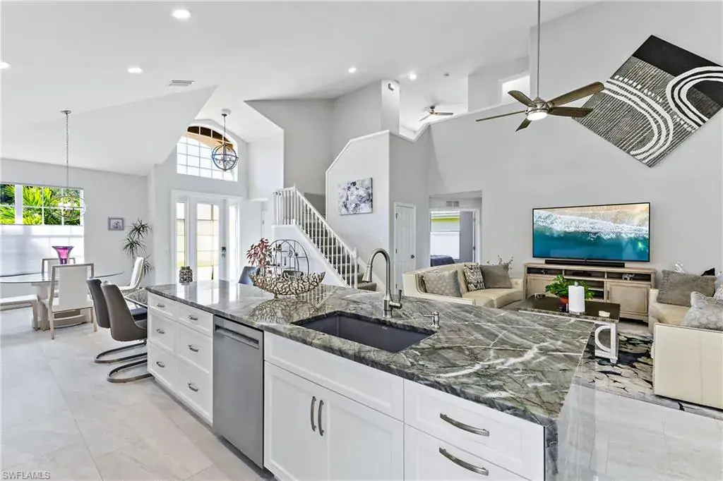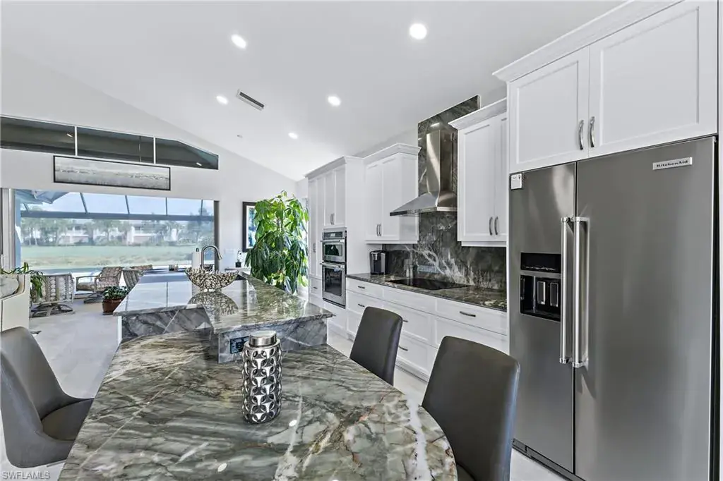 This home has undergone an Amazing and complete remodel, featuring a masterpiece kitchen with Italian Quartzite countertops, a chef’s island, and top-of-the-line KitchenAid appliances. Hunter Douglas blinds adorn every window, and Stormsmart Hurricane Screens provide peace of mind. It has a Gorgeous Outdoor Kitchen with an Oversized Kitchenaid grill.The Lutron 5K lighting system sets the perfect ambiance, enhancing every corner of this exquisite abode.