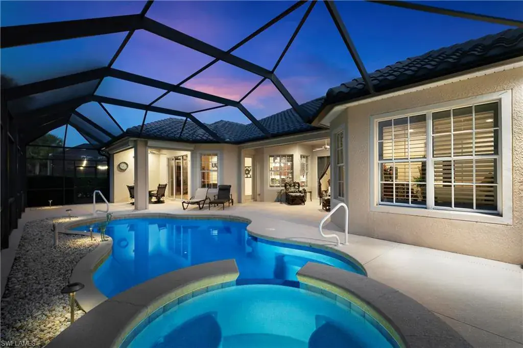 Largest floorplan on the street offers stunning lake views featuring 3 beds/3.5 baths As you step into the grand foyer, take in the architecture of volume tray ceilings, and other tasteful finishes throughout. The kitchen is both stylish & practical, with granite countertops, stainless steel appliances, and a lovely breakfast bar & nook. In addition to the spacious great room, there is an intimate living room, so you’ll have plenty of space for entertaining! The palatial main suite has direct pool access, making the dream of waking up and taking a dip in the pool into a reality. Generous ensuite bathroom with his/hers sinks, built-in vanity, his/her walk-in closets, walk-in shower, deep soaking tub, and an enclosed toilet to maximize your privacy. The screened pool area is the perfect outdoor oasis for both you & guests to enjoy, with incredible lake & golf course views. Take advantage of the newly redeveloped club and private deeded equity memberships.