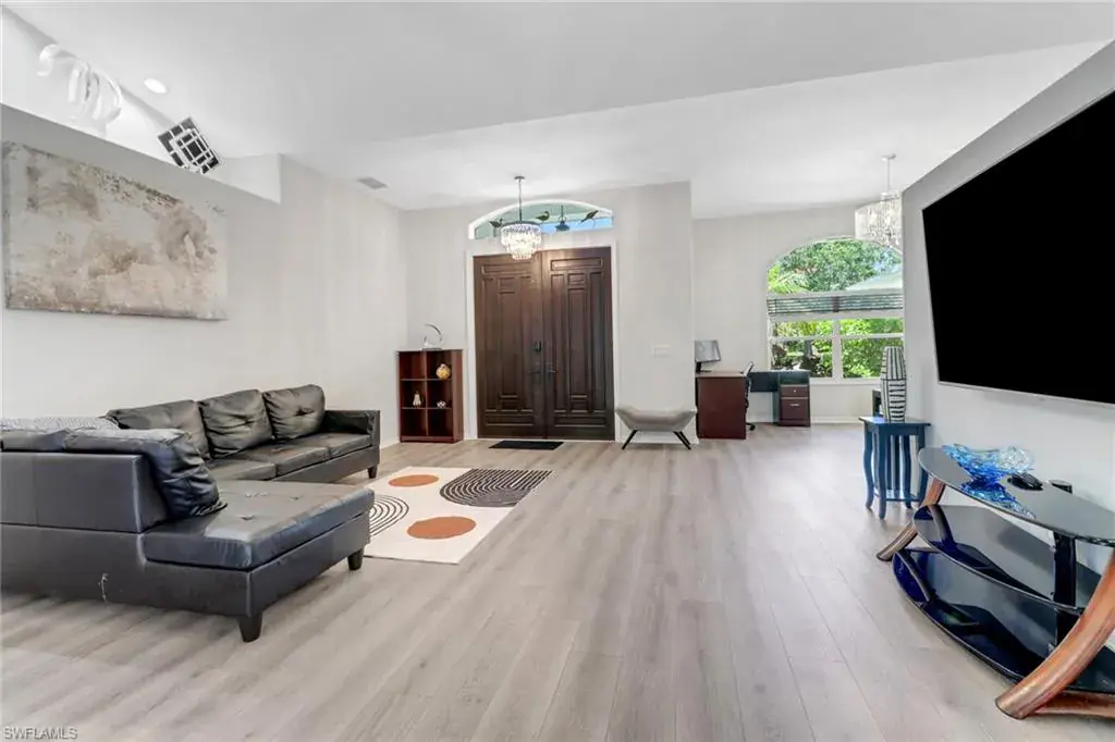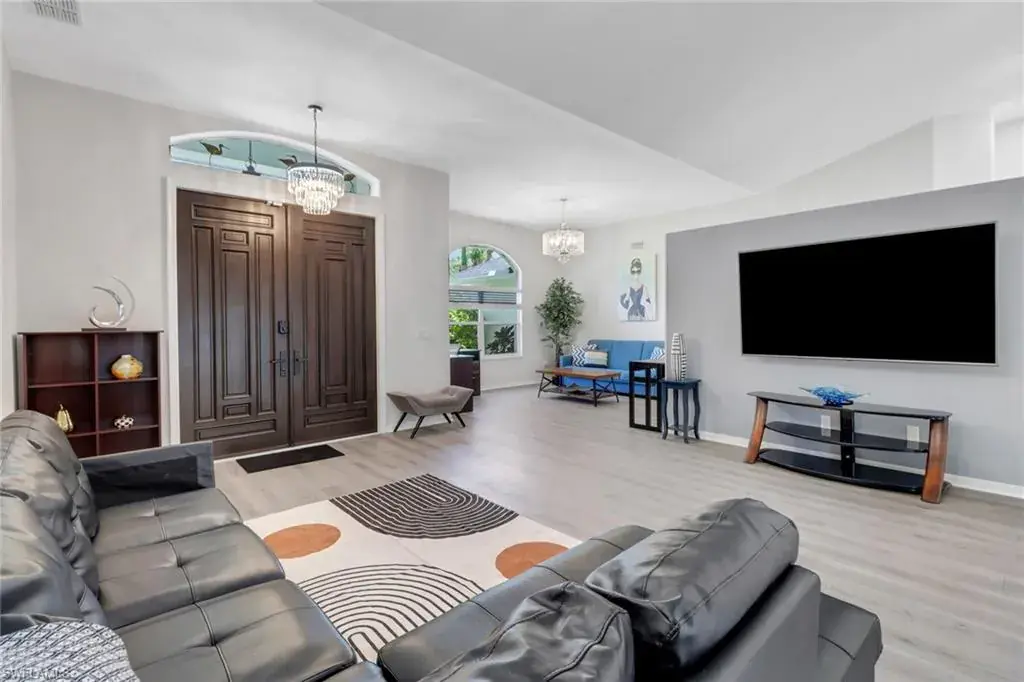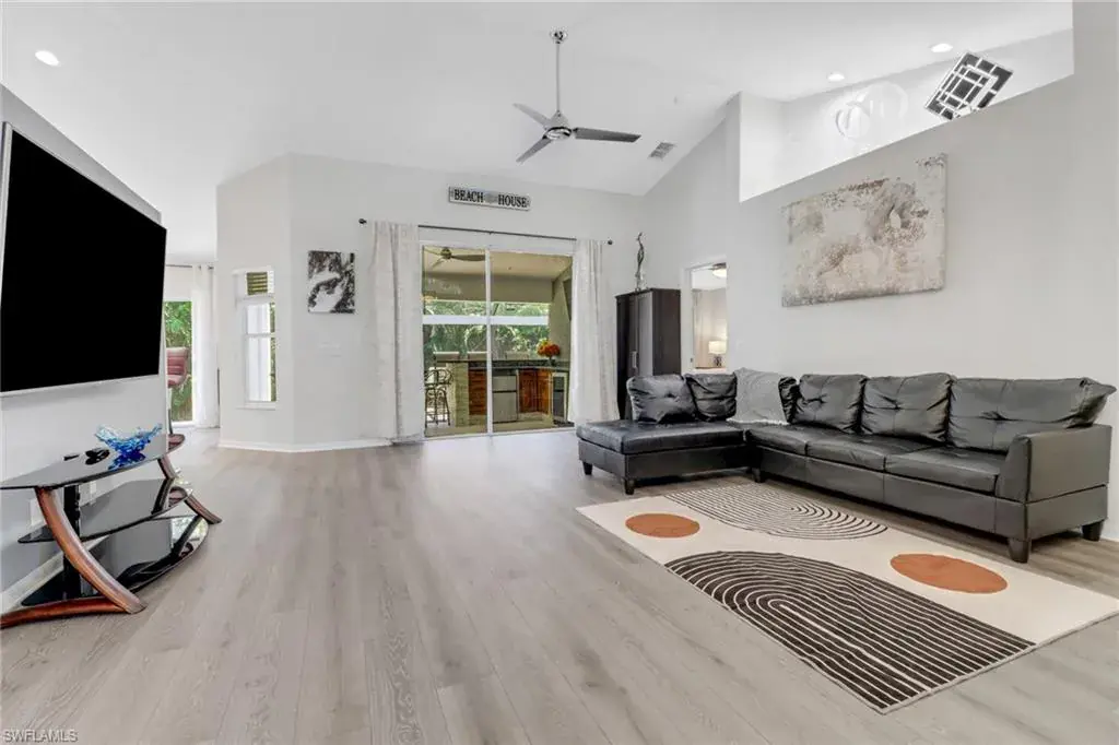 Welcome to this beautifully maintained 3-bedroom, 2-bath pool home nestled on a quiet cul-de-sac in the highly sought-after Willoughby Acres neighborhood. With no HOA and no flood zone, this property offers peace of mind and ultimate flexibility. The home sits on a lush, private lot surrounded by mature vegetation, creating a serene, secluded feel just minutes from everything Naples has to offer. Step inside to soaring vaulted ceilings and a spacious, open-concept layout filled with natural light. The 1834sf floor plan includes a large living area, split-bedroom design for added privacy, and generous kitchen and dining spaces perfect for entertaining. Enjoy indoor-outdoor living with sliding glass doors that open to two dedicated entertaining areas: (i) an expansive deck for games and BBQing and (ii) pool area for cooling off and sunbathing, combined, they are ideal for relaxing or hosting friends and family. Recent upgrades include a new roof in 2021 and AC in 2022. Outside, the quiet cul-de-sac location means no through traffic, while the walkable surroundings put you just steps away from local dining options. You’re also less than 5 miles from the beach, Mercato, I-75, and countless restaurants and attractions. This is a rare opportunity to own a move-in-ready pool home in North Naples’ favorite non-HOA neighborhood. Whether you’re looking for a primary residence, seasonal escape, or investment property—this one checks all the boxes!