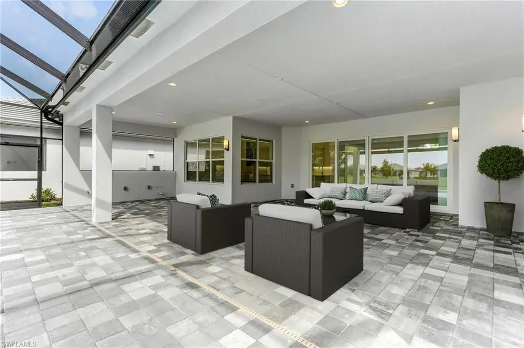 Upgrades include rain shower, recessed lighting throughout, 24″ rectified tile, double stack cabinets with crown modling and lighting package, upgraded cabinet hardware, upgraded kitchen and bath fixtures, cabana bathroom, french glass doors to club room, extended curved driveway , epoxy garage floors, impact glass windows and doors, pre-plumbing for outdoor kitchen, laundry cabinets and sink.