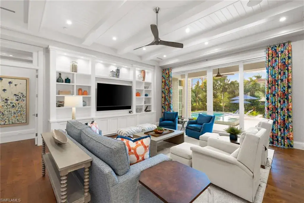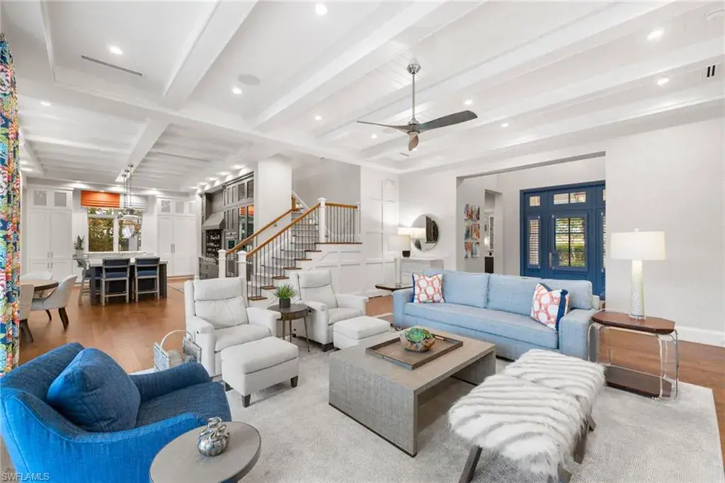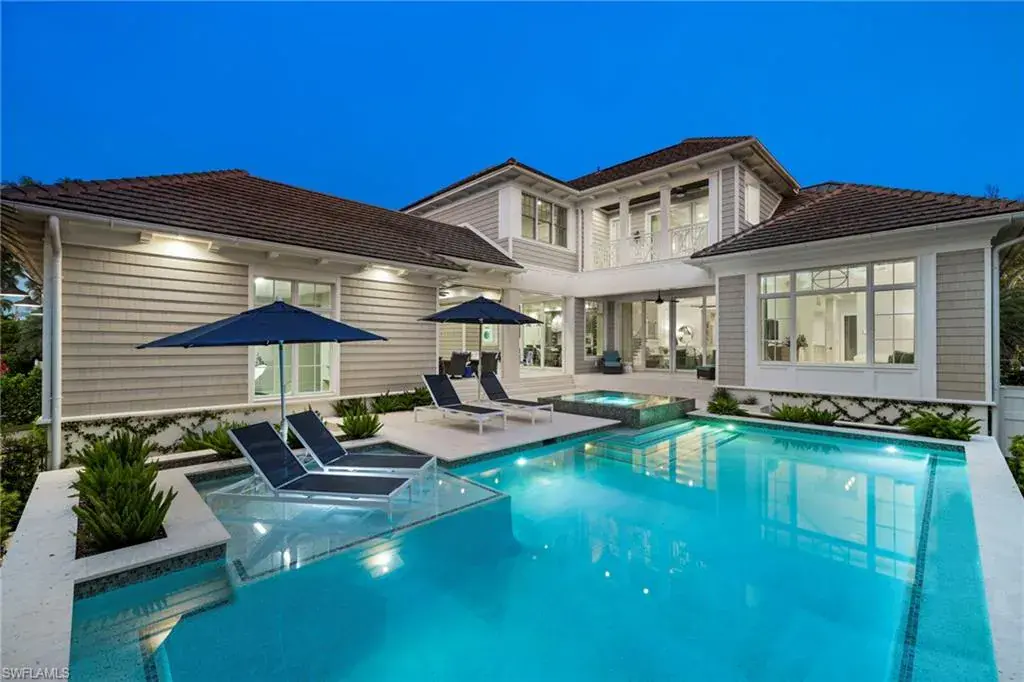 Step into luxury in this meticulously maintained, move-in-ready home in Old Naples, designed by Stofft Cooney Architects and constructed by Big Island Builders. Located just one parcel away from the Gulf’s sugar sand beaches, this trophy property is nestled in a prestigious enclave of homes adorned with designer finishes, wall coverings, exquisite fixtures, window coverings and custom cabinetry. No detail has been overlooked. The gourmet kitchen features a Wolf Range, double Wolf wall oven, Sub-Zero wine chiller, and oversized Sub-Zero refrigerator and freezer. A large covered lanai equipped with electronic screens and shutters and built-in grilling station creates an indoor-outdoor paradise. The residence offers 4 oversized ensuite bedrooms and an expansive office/parlor with an ensuite bath. Boasting conveniences like a private elevator, dual-level laundry, generator, a 3 car garage with height for 3 car lifts and plenty of storage, this elegant oasis seamlessly blends understated opulence, comfort, and serenity. A perfect family retreat for relaxation and rejuvenation. This home stands as the epitome of modern elegance fused with comfortable coastal living, an absolute must-see!