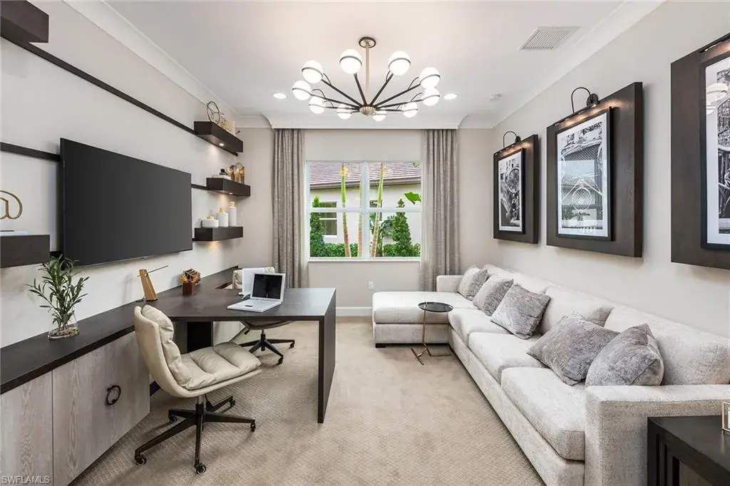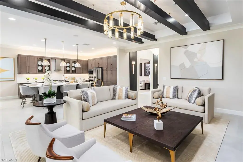 The lifestyle you’ve been desiring is just around the corner with this highly desired “Sunrise” floor plan underway in Valencia Trails. The spacious open layout features 3 bedrooms plus den, 3 & 1/2 bathrooms, 3-car garage, and impact windows throughout. The gourmet kitchen boasts stainless steel appliances, soft close cabinets, and Quartz countertops. The luxurious master retreat features two walk-in closets and ensuite bathroom with dual vanities, Roman tub, and walk-in shower. Some of the many upgraded options include 24×24 tile, extended covered patio, pre-plumbing for and summer kitchen with electric, and natural gas, and much more. This sought after new community features an exceptional lifestyle with resort-style amenities at the 43,000 sq.ft. clubhouse, including the resort-style pool, 70 ft. lap pool, resistance pool, outdoor fire pit, onsite restaurant, social hall with dance floor and stage, fitness center, nail salon, sports lounge, and more. Situated on 160 acres of pristine preserve with over 3 miles of walking trails, and endless activities including pickleball, tennis, bocce, and dog park. The estimated completion date of this home is September/October 2024. Photos are of the builder’s model and not the actual home.