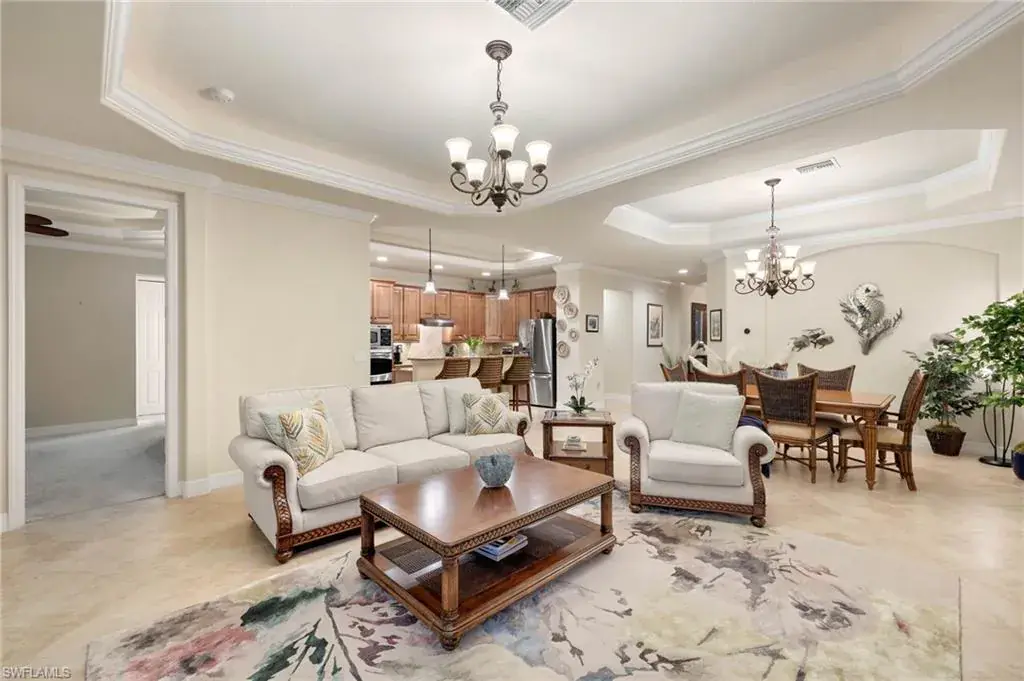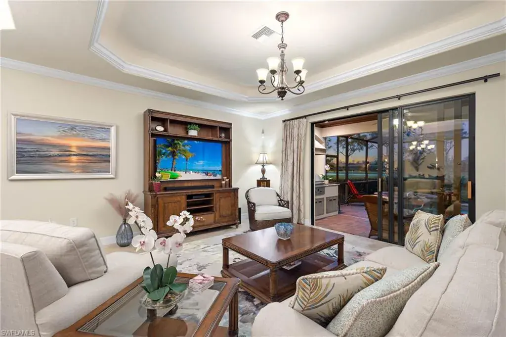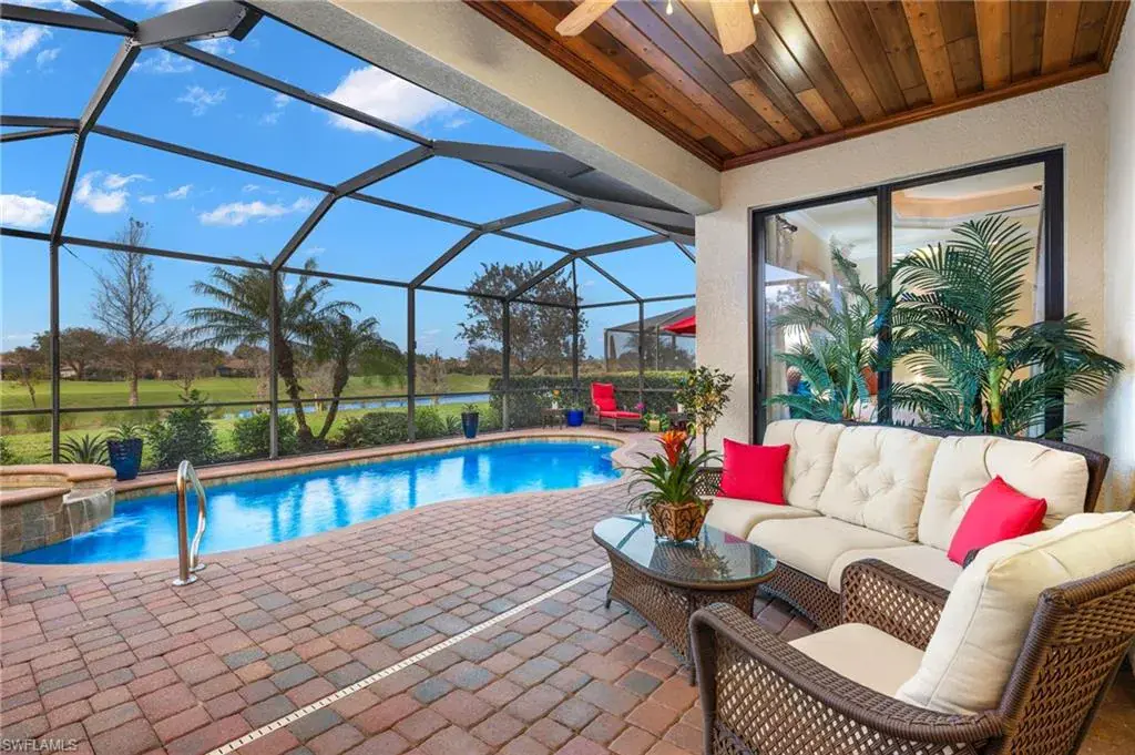This meticulously maintained Sophia model with golf course and lake views is now available in the premier golf community of Twin Eagles. FULL GOLF MEMBERSHIP conveys with the property! This property features 3 bedrooms PLUS a den & 3 full bathrooms with a great room open concept floor plan, ideal for entertaining while still offering privacy with split bedrooms. The kitchen is open to the great room and features granite counters, a large island with plenty of seating, stainless steel appliances, a built-in desk and full-sized pantry. Through the sliding glass doors you’ll enjoy the spacious outdoor screened lanai with a beautiful pool and integrated spillover spa, paver deck and generously sized outdoor kitchen. The oversized covered area has a gorgeous wood ceiling and allows plenty of space for outdoor living. Upgrades include tray ceilings, diagonal set tile in the main living areas, French door entry to the den & impact glass doors & windows throughout. This community offers something for everyone with dining options, a tiki bar, multiple activities, a fitness center, pool & spa overlooking the lake tennis & pickleball courts and more. Stop by to see the renovated clubhouse!