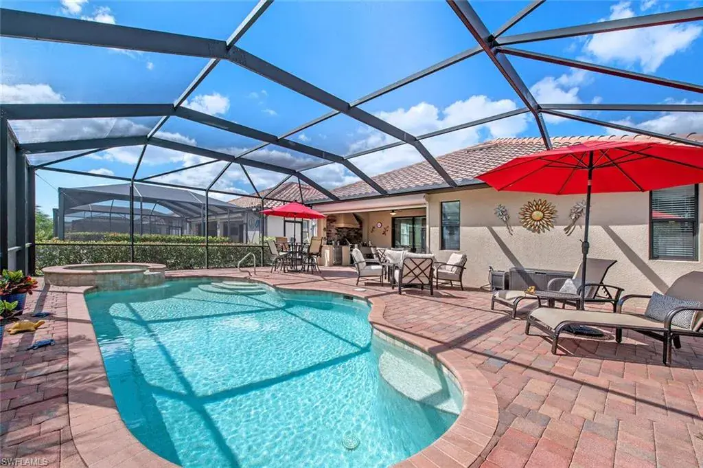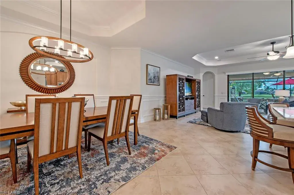 This stunning home has southern exposure with great golf views. It is located in the prestigious community of Twin Eagles and offers a Full Golf Membership with the purchase. This 3 bedroom plus den/4th bedroom, home is being sold furnished. Some of the upgrades which were done in 2022 are a new Carrier AC system, new quartz countertops and backsplash in the kitchen, water filtration, and water softener. The extra-large lanai has an outdoor kitchen and a wooden ceiling perfect for entertaining! This creampuff is move-in ready! Twin Eagles has just been named an Audubon Signature community and has 2 championship golf courses, Tennis, pickleball, and bocce, state-of-the-art fitness center, and a Tiki bar! The clubhouse is being renovated and slated to open in June/July 2023!