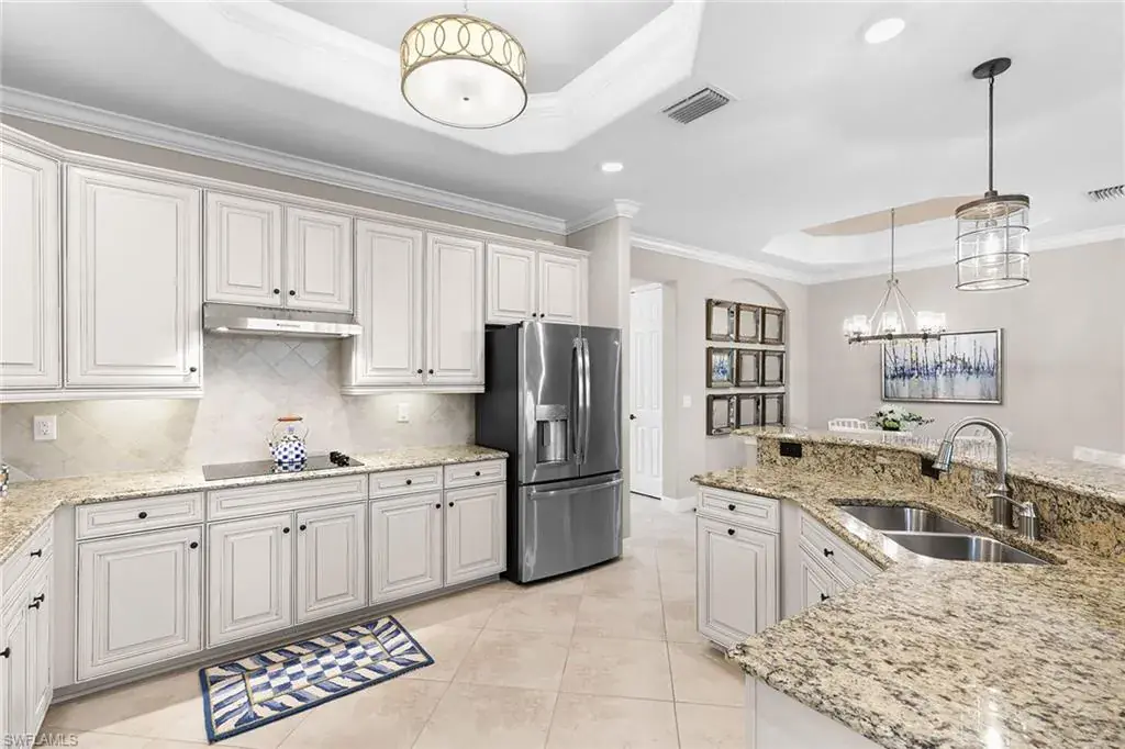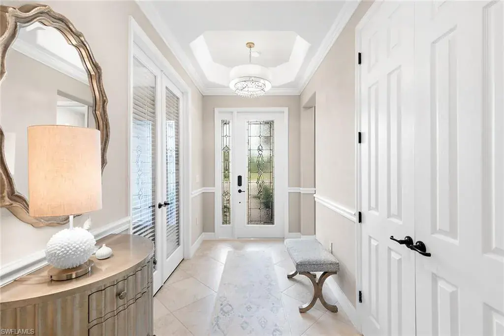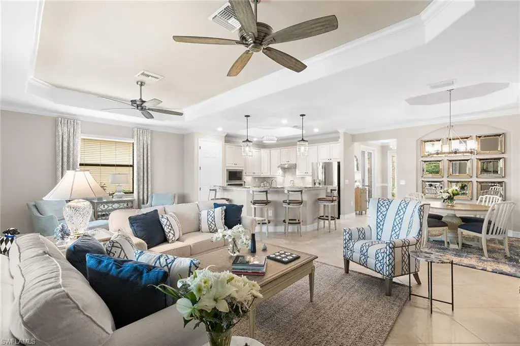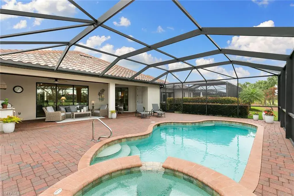 Welcome to your dream home! This meticulously maintained Victoria floor plan is a masterpiece, elegantly furnished and ready for you. This property includes a deeded full golf membership, granting you exclusive access to all the golf and club amenities with no waiting. Step onto the extended lanai, the perfect spot to soak up the Florida sunshine while enjoying the pool. With a convenient cabana bath, you can seamlessly transition from pool time to the outdoor lanai area enjoying the outdoor grill and a great space for dining. The lanai’s wood ceiling detail adds a touch of charm, creating an inviting ambiance. Your peace of mind is guaranteed with impact glass windows and doors, offering safety and energy efficiency. On a highly desirable southern exposure golf course homesite, you’ll be treated to stunning views every day. The TwinEagles Club has recently undergone an impressive renovation, and the reimagined clubhouse centerpiece is open for members to savor.