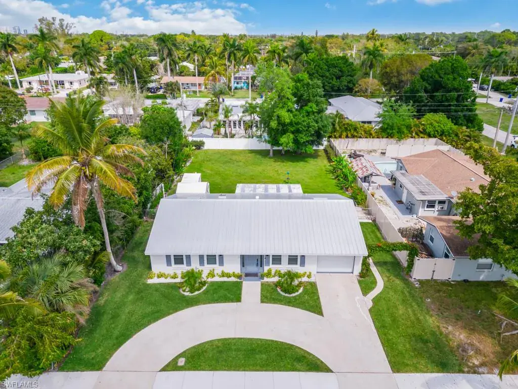Centrally located 3 Bedroom, 2 Bath home on a generous sized, fully fenced 0.24 acre lot. Wonderful curb appeal with white painted brick facade, grey shutters and door with side light windows. A circular driveway and 1 car garage provides plenty of parking.  Fantastic features include a 2022 renovated kitchen with stainless whirlpool appliances and granite countertop, updated bathrooms, insulated glass windows, whole house re-plumbed in 2022, and new hot water heater.  Indoor laundry room has floor to ceiling cabinetry plus a tool shed and storage shed in the back for plenty of storage.  This home offers a screened in lanai and an uncovered paver deck overlooking an expansive back yard and allows room to add a pool. This prime location is minutes to so many local attractions, restaurants, schools, parks and of course Naples famous beaches.  Located in an x-500 zone.