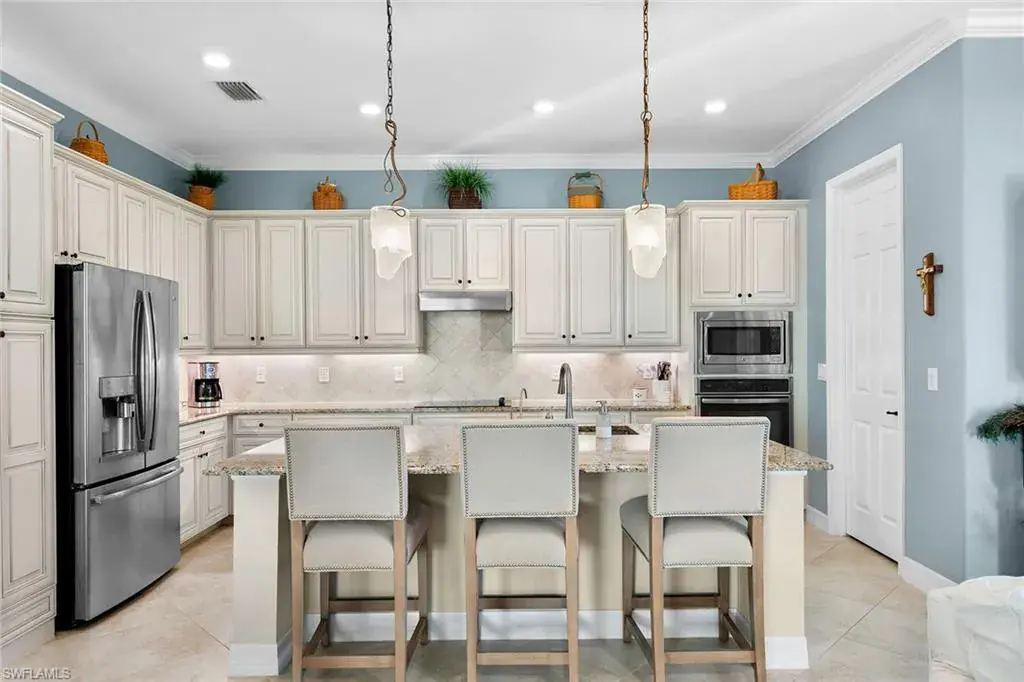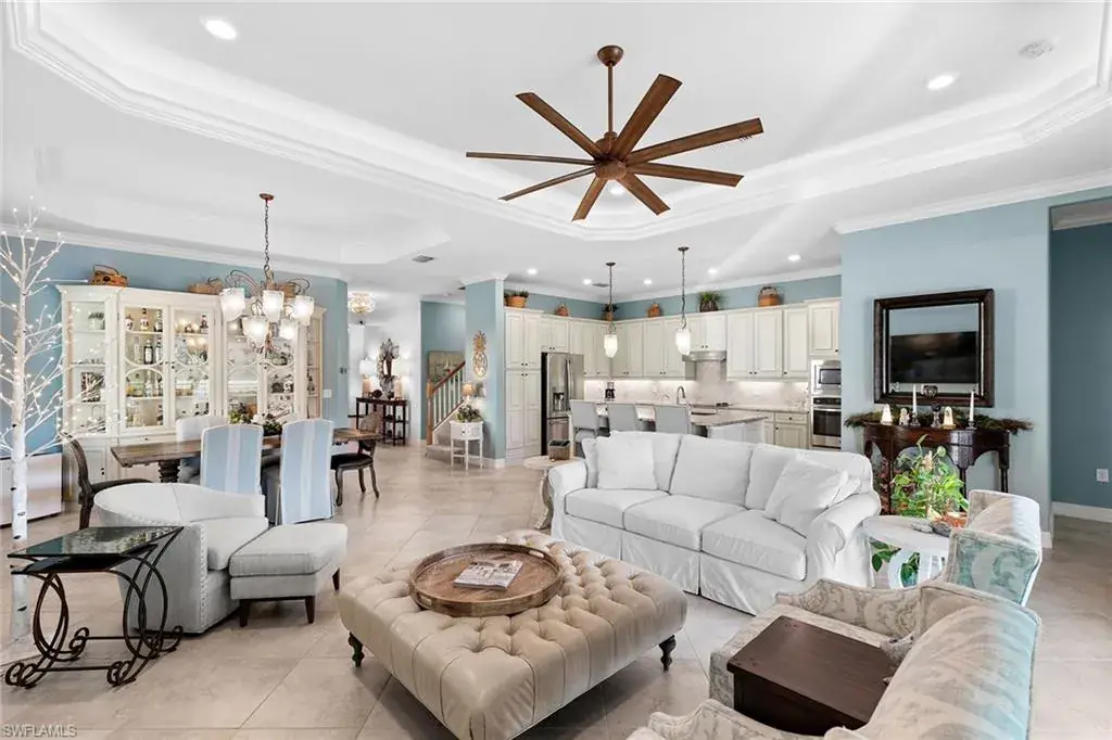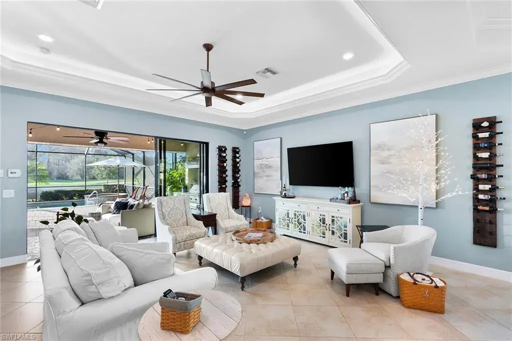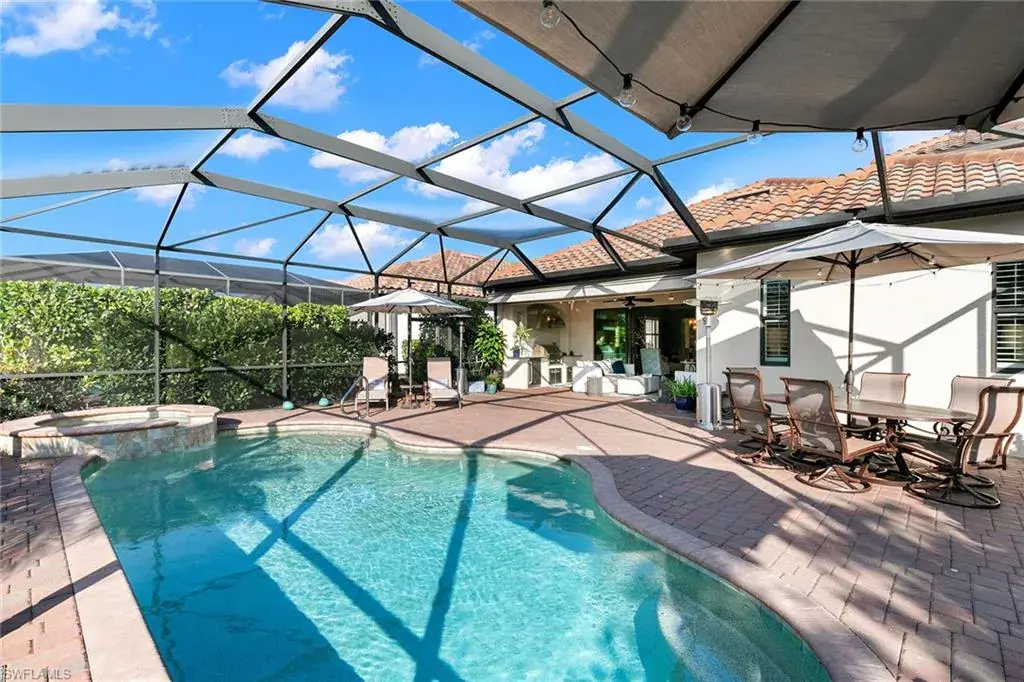 Immerse yourself in luxury living in Naples with this full golf membership property in The TwinEagles Club. Featuring three bedrooms plus a den and four full bathrooms, this exceptional home offers thoughtfully customized indoor and outdoor living spaces. The second floor bonus room serves as a versatile loft, perfect for a guest suite while they are in town (essentially living as a vacation home), exercise room, putting studio, crafts room, home theater or expansive storage space. Enjoy upgraded features throughout, including custom built-ins, modified closets, and an enhanced outdoor kitchen. Step outside to breathtaking views of the par 3, No. 4 hole of the Eagle Course, complemented by a beautiful saltwater pool and spa. The recent revitalization of the TwinEagles clubhouse centerpieces the community’s amenities, providing residents with an unparalleled lifestyle. If you’re a golf enthusiast looking to start playing golf immediately upon ownership, this property delivers luxury, comfort, and elegance. Plus, enjoy the convenience of whole house water filtration and a kitchen reverse osmosis system. Bonus: The balance of the Home-Tech Home Warranty transfers to the Buyer at closing.