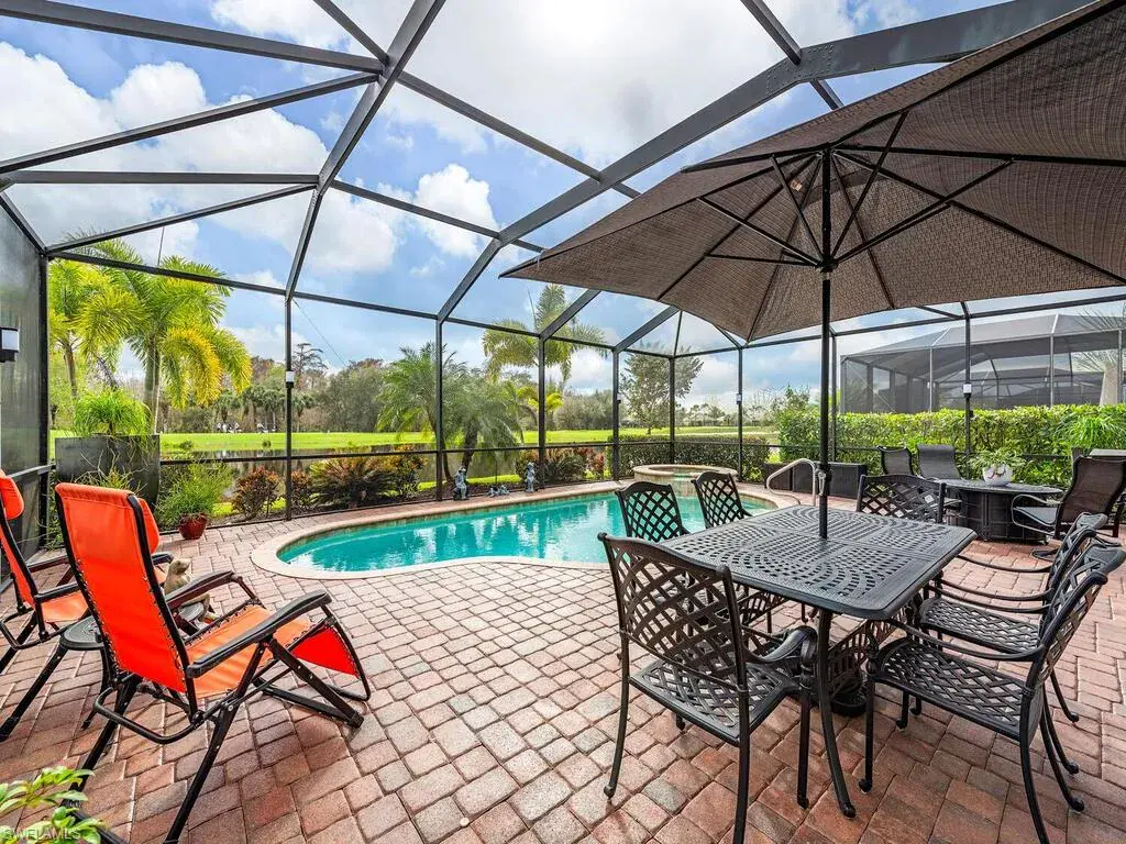 H13974Golf immediately!! Full Golf membership with no wait list is transferred with this beautiful 4 Bedroom 3 Full bath home in desirable TwinEagles community. TwinEagles is an Audubon International Signature Sanctuary, and the home of 36 Championship holes of private golf. The front of the home is professionally landscaped facing Corkscrew Sanctuary and Red Maple Preserve providing a peaceful and serene setting. From the oversized screened-in patio enjoy the natural beauty overlooking a large pond, Eagle hole #4 (par3) and natural preserves. Built in 2017 highly sought Maria model boasts 3/4 bedrooms, 2 full en-suite bathrooms, and a 3rd guest/private en-suite bathroom. This large open concept home has an over-sized kitchen island, custom hand blown glass pendants, upgraded cabinetry throughout with custom pullouts, and a walk in pantry. This fully upgraded home has been meticulously maintained with tile throughout, plantation shutters, illuminated tray ceilings, impact glass windows/doors, fully automated salt water pool with waterfall hot tub, large covered lanai with built-in kitchen, built-in infrared heaters, and a Hurricane shade to keep out the elements.