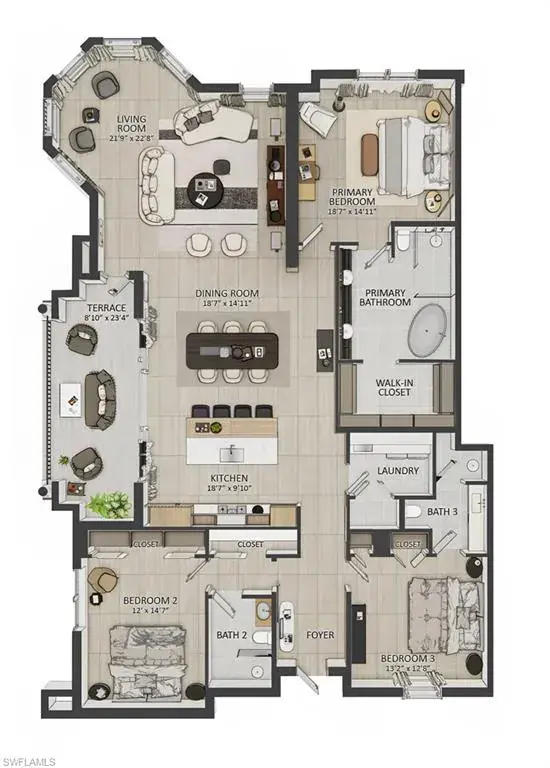 3 Full Bathrooms