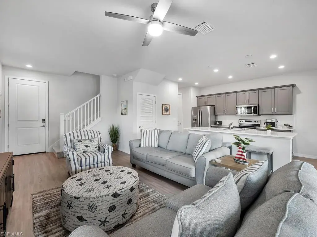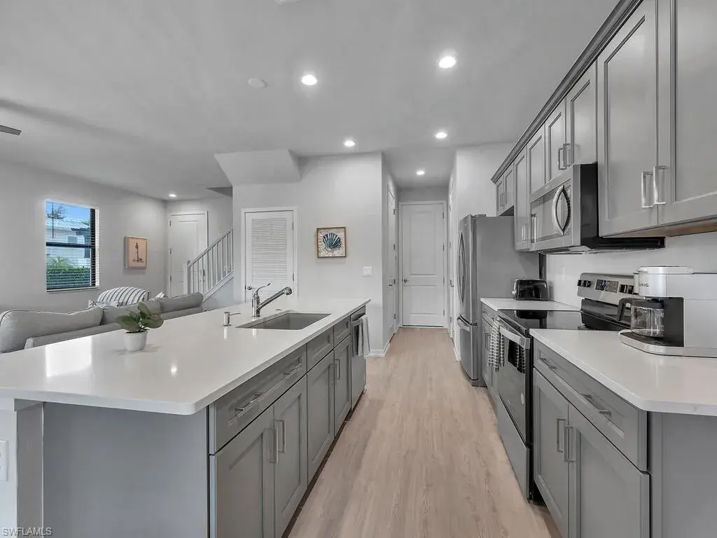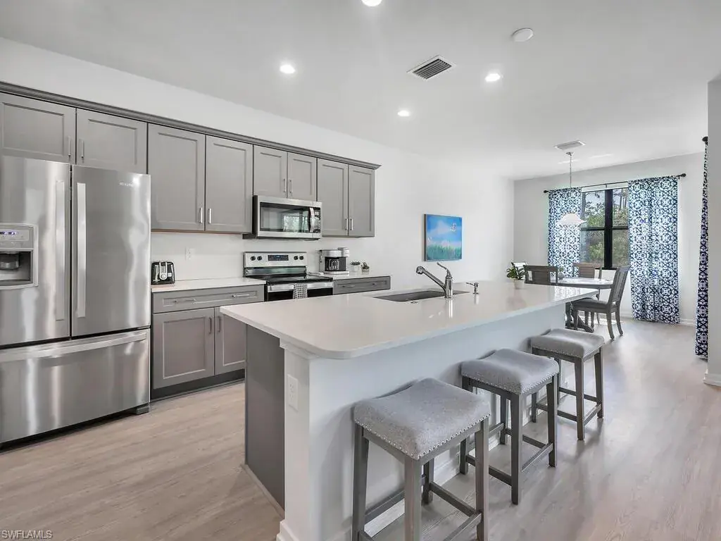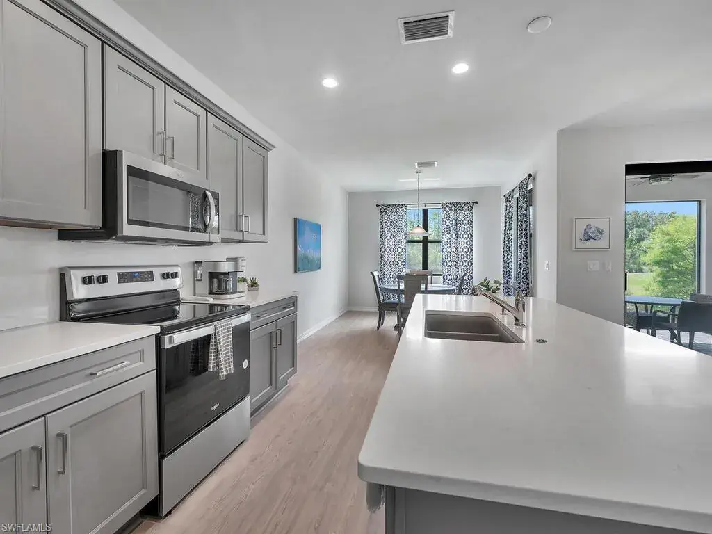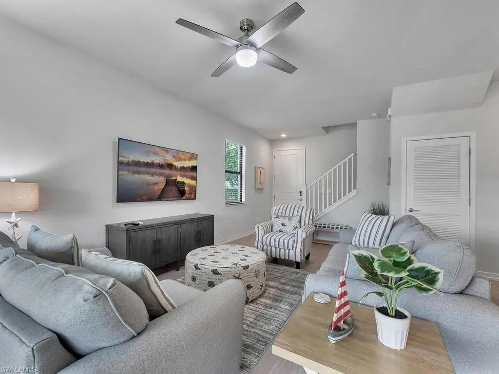 ONLY 6 HOMES IN THIS COMMUNITY HAVE THIS!!…Welcome to one of the most coveted locations in Hamilton Place, where only six residences enjoy this tranquil and UNOBSTRUCTED LAKE VIEW—and now, one of them can be yours! Nestled in this private, gated Toll Brothers community, this end-unit townhome offers not just a home, but a lifestyle defined by peaceful water views, tropical breezes, and a connection to nature that’s hard to find in the heart of Naples. Imagine starting your day on the screened lanai, sipping coffee while overlooking the calm lake waters, or winding down with an evening cocktail to the soft sounds of nature – sounds relaxing, doesn’t it? Steps from the sparkling community pool and just minutes to downtown Naples, Park Shore, and Clam Pass beaches, this residence offers an ideal blend of serenity and accessibility. Inside, you’ll find 3 bedrooms + den, 2.5 baths, and an attached 2-CAR garage, with bright, open-concept living spaces filled with natural light thanks to its end-unit placement. Luxury vinyl plank flooring on the main level adds style and durability, while the upstairs features plush carpeting and a flexible loft/family room. The oversized primary suite is your private retreat, complete with a spa-like bath featuring dual sinks, a walk-in shower, vanity station, and lake-facing windows that flood the space with natural light. The gourmet kitchen is designed for both beauty and function, offering an oversized island with breakfast bar, upgraded countertops, and abundant cabinetry. Additional upgrades include a finished garage with polished floors, painted walls, and extra storage. This is more than a home—it’s a rare opportunity to own one of only six properties in Hamilton Place with this spectacular lakefront setting! Schedule your private tour today!
