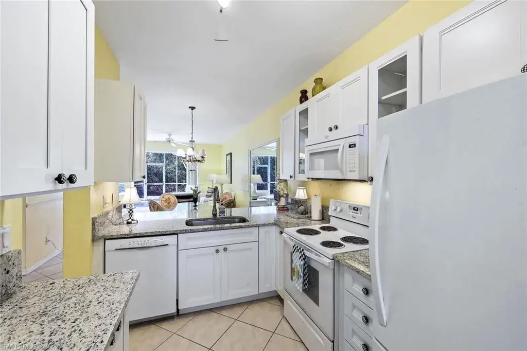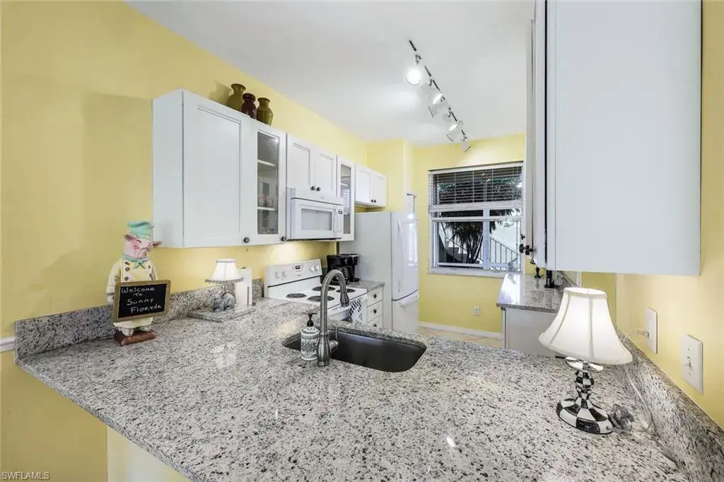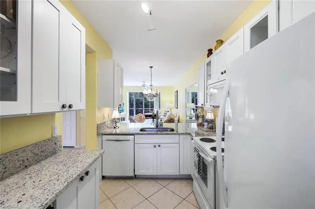 This turnkey furnished condo shows like a model. Immaculate 3-bedroom, 2-full bath first-floor unit boasts an updated kitchen complete with granite countertops and a built-in wine cooler, perfect for entertaining. Tile floors throughout, no carpet. Front and rear screened lanais. With a washer/dryer conveniently located in the unit and your very own covered parking spot, and a community pool located nearby for convenience and comfort. Located close to the pristine beaches of Marco Island, the vibrant downtown area of Naples, as well as an array of restaurants and shopping destinations, you’ll never be short of entertainment options.