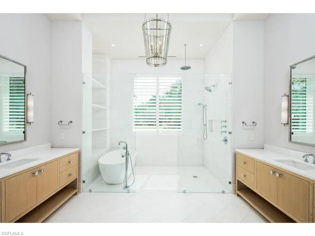 Exceptional newly-built opportunity thoughtfully designed by Kukk Architecture & Design, P.A. with highly sought after western exposure. The residence was conceived and built with extraordinary attention to detail and sophisticated finishes including French Oak, Mahogany, Teak and Travertine marble. Particular attention was paid to the primary rooms optimizing natural light and elevating indoor/outdoor living and entertaining. The well appointed kitchen and butler’s pantry feature bespoke cabinetry, elegant stonework and well arranged exceptional appliances. Five private bedroom retreats. Notable functional attributes such as large utility room equipped with double washer/dryer configuration, outdoor kitchen, three garage spaces, and a generator. Custom landscaping featuring rare Date Palms and antique granite cobblestone driveway. Located in Coquina Sands, a neighborhood coveted for its close proximity to some of Naples’ most beautiful beaches, gorgeous tree-lined streets, and convenient access to all areas of the City of Naples.