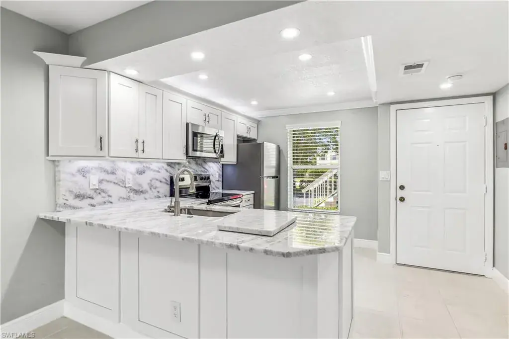 Nestled along the serene preserve and waterways of Naples, this newly renovated ground floor condo offers a captivating blend of coastal charm and modern luxury.