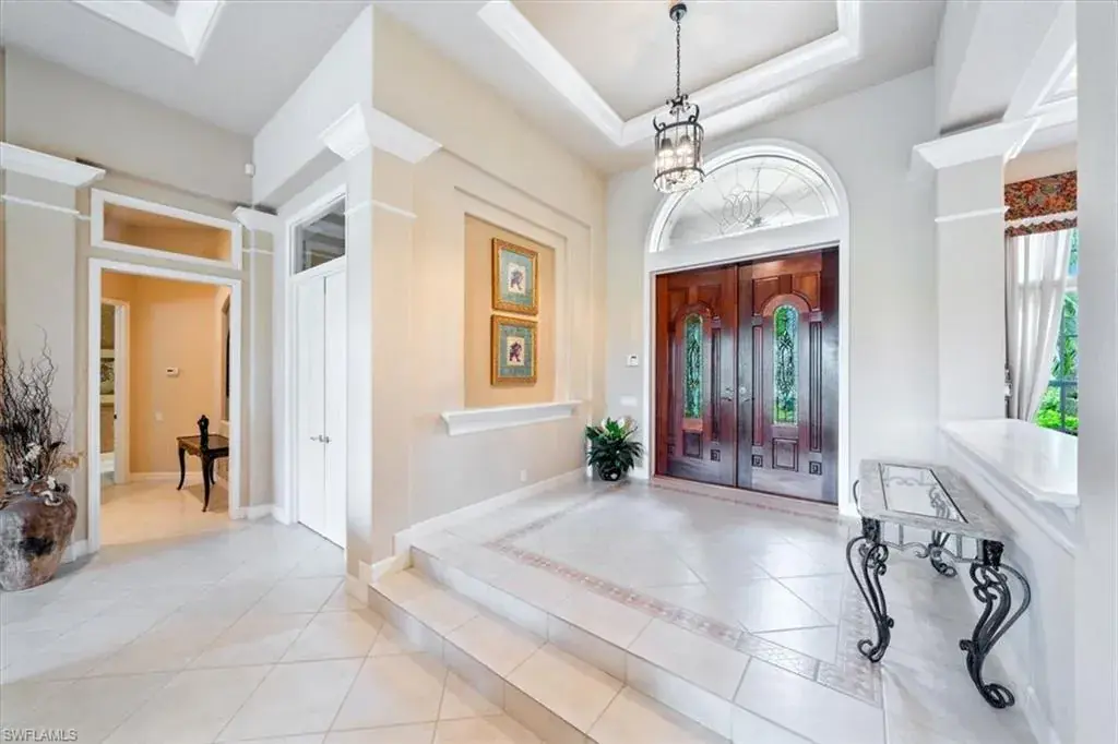 Come discover this magnificent estate home situated on almost an acre lot on the 1st hole & fairway in exclusive Quail West. From the moment you enter the foyer, you’ll appreciate the stunning views that highlight the pool & golf course beyond as well as the luxurious living room with impressive gas fireplace. Classic elements & neutral tones make this home elegant but very relaxed. Appointments throughout are expressed in the detailed moldings, oversized rooms, tall ceilings as well as a large wet bar in the center of the home. There’s plenty of space for family life & entertaining with four bedrooms plus den, four full bathrooms, formal dining, 3 car garage & 4,223 square feet under air. Multiple sliders open to the expansive outdoor pavered area with a covered, screened dining area & full outdoor kitchen as well as pool & spa. The gourmet kitchen provides abundant storage & counter space, center work island, breakfast bar, pantry & adjoining breakfast room. New roof in 2018, newer ACs, new sprinkler system 2021. A RARE Beach Membership is available as well. Golf cart & furnishings negotiable. A Quail West address is the pinnacle of luxury living & where you should call home.