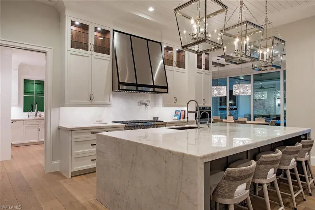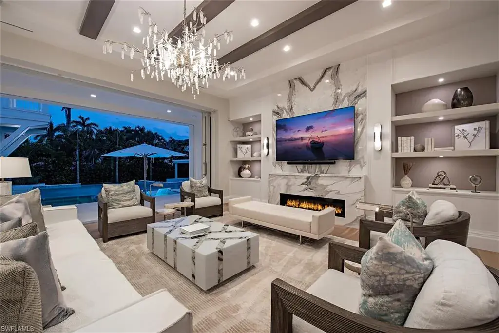 Welcome to an incredible new MHK timeless cottage style home in the perfect Old Naples location. This extraordinary custom home is situated just 5 parcels from the Gulf and was constructed and sold by renowned developer VIV Homes in 2022. Ideally positioned on an interior lot with preferred southern exposure and rear alley access, this location is just a short stroll to the Naples pristine white sand beaches, shopping, dining, and art galleries along 5th Avenue South and historic 3rd Street South. Residence includes 5 bedrooms + office, nearly 6,400 square feet of air conditioned living space, 7 baths, additional VIP staircase entry, 3 car garage, and an exceptional outdoor living space. Some of the special features include full concrete construction, extensive natural stones throughout, custom cabinetry including Poliform Italian made custom closets, Legno Bastone wood flooring, chef’s kitchen with Subzero/Wolf/Miele appliances, Cristallo Prime quartzite counter tops, service kitchen, natural gas, 48kw generator, Lutron low voltage lighting system, water filtration, Sonos, and security with cameras and water alarm systems. Outside you will find a five star resort like outdoor living space enclosed by automated screens/shutters, fire place, pool bath, heated saltwater infinity edge pool/spa adorned with Tuuci umbrella, fire pit with trellis, and an artificial turf yard. Truly nothing lacks in this very special move in ready opportunity.