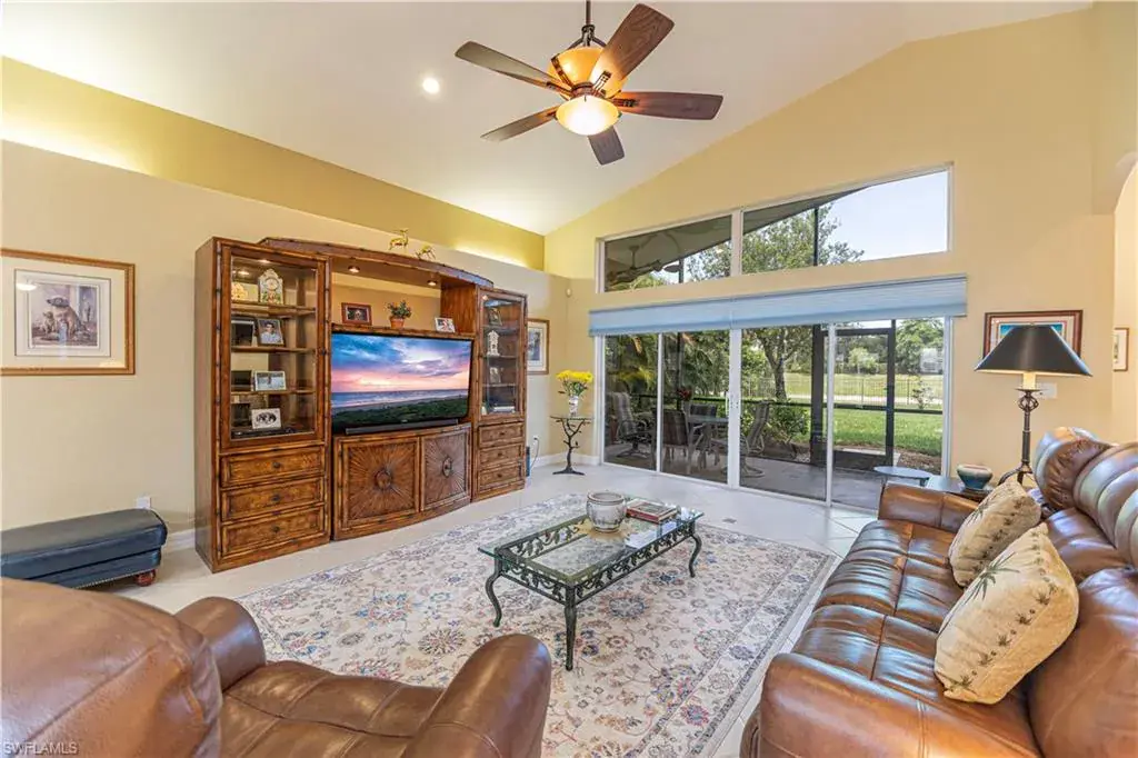 Rarely available large quiet cul-de-sac lot in North Naples can be yours! This open floor plan has 3 bedrooms with 2 full baths. It is located on one of the most sought-after streets in Saturnia Lakes. The spacious split bedroom floor plan has soaring ceilings. The master suite has coffered ceilings and 2 walk-in closets. The home has a large screened patio that is surrounded by lush landscaping with a beautiful lake view. This well-maintained home offers lots of privacy and is perfect for entertaining in style. This oversized lot has a 60′ x 70′ fenced in area and plenty of room for a pool! The roof was replaced in 2019. Saturnia Lakes is an award-winning community that offers resort style living with 2 heated pools, hot tub, fitness room, dance studio, internet cafe, saunas, billiards room, ballroom, clay tennis courts, playground, basketball court, and putting green. With A rated schools and minutes from shopping and restaurants this is a must-see home.