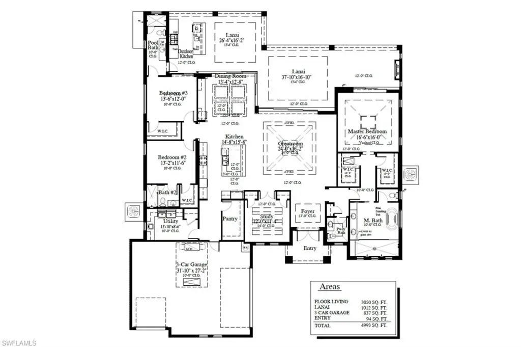 Expansive glass doors open to an extraordinary outdoor living space designed for seamless indoor-outdoor enjoyment. A covered lanai leads to a fully equipped summer kitchen and a custom saltwater pool and integrated spa, where clean lines, premium finishes, and tranquil surroundings create the ultimate backdrop for relaxation or refined entertaining. A spacious 3-car garage completes the home, bringing the total footprint to 4,993 square feet.