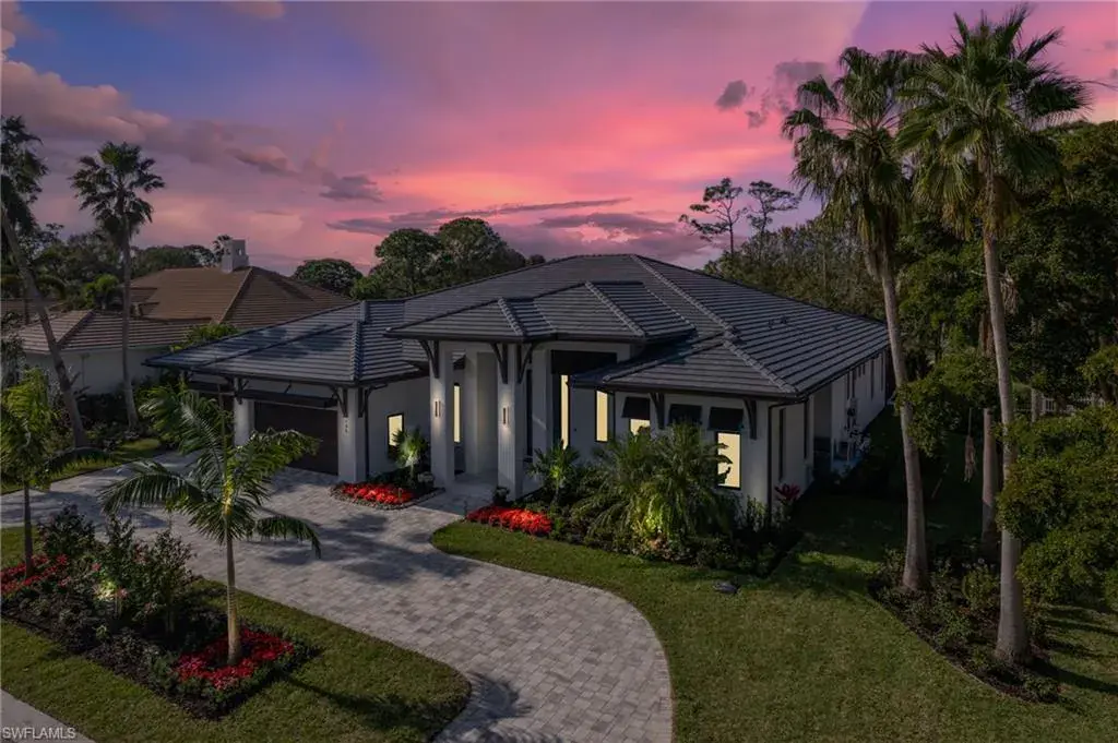 A long-awaited New Construction Smart home, in Audubon Country Club, elegantly design by South Florida Design, Inc. & built by FORGE CONSTRUCTION, LLC. Completed in December 2023, this highly efficient 4 bedroom + Den, 5 full bath, 1 half bath, Saltwater Pool/Spa custom home overlooking the 15th fairway, offering 4,346 sf under air with a total of 6,417 sf of seamless indoor/outdoor living space. An elegant yet casual design includes an open floor plan perfect for entertaining with wet bar, wine frig. The kitchen includes Sub-Zero Refrigerator, Wolf appliances, waterfall quartz counters and oversized walk-in pantry. The private Owners Suite incl. dbl vanities, multiple head walk-in shower, spa tub & his/hers closets. This split bedroom floor plan offers three add’l family size bedrooms all w/private bath. The lanai features a summer kitchen, casual dining & living w/gas fireplace and state-of-the-art Pentair pool system w/custom lighting, Pool bath, outdoor shower and picture window screens. Audubon Country Club is located in North Naples minutes to Vanderbilt Beach and The Mercato, with only a short drive to everything downtown Naples has to offer. Furnished photos from model home