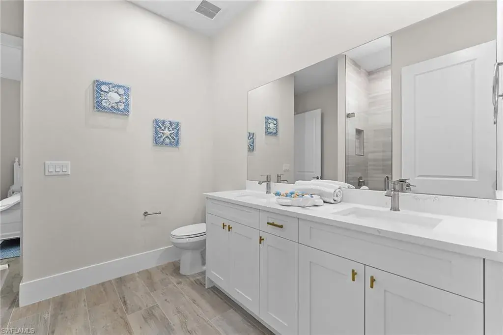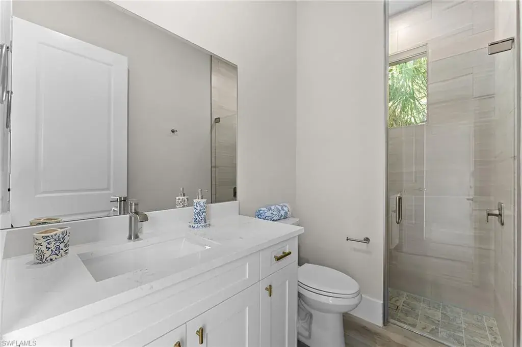 Resort-style amenities define the outdoors: a heated lakefront pool with integrated spa and sun shelf, professionally lit landscaping, and irrigated Floratam lawns. A paver driveway and epoxy-coated garage enhance the home’s polished exterior. Located across from the 9.5-acre Naples Preserve and just minutes from Fifth Avenue South and the Gulf of Mexico, the property offers unrivaled proximity to luxury shopping, fine dining, and Naples’ renowned white-sand beaches. With immediate occupancy available, this residence represents a rare convergence of new construction, enduring location, and modern coastal design—crafted for those who value permanence, privacy, and proximity in the heart of Naples.