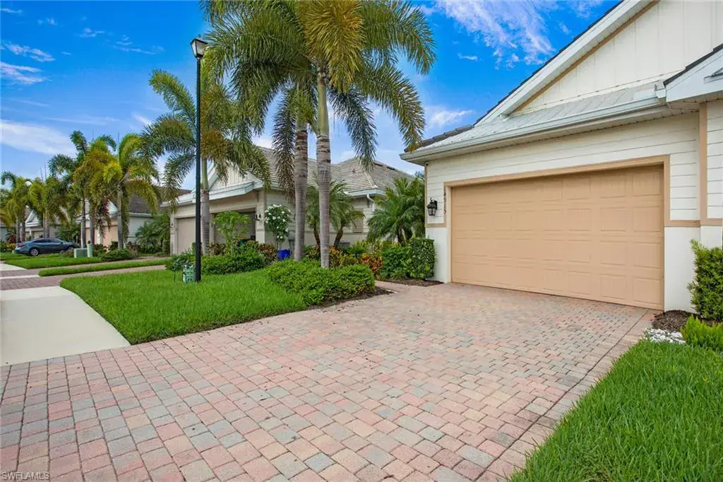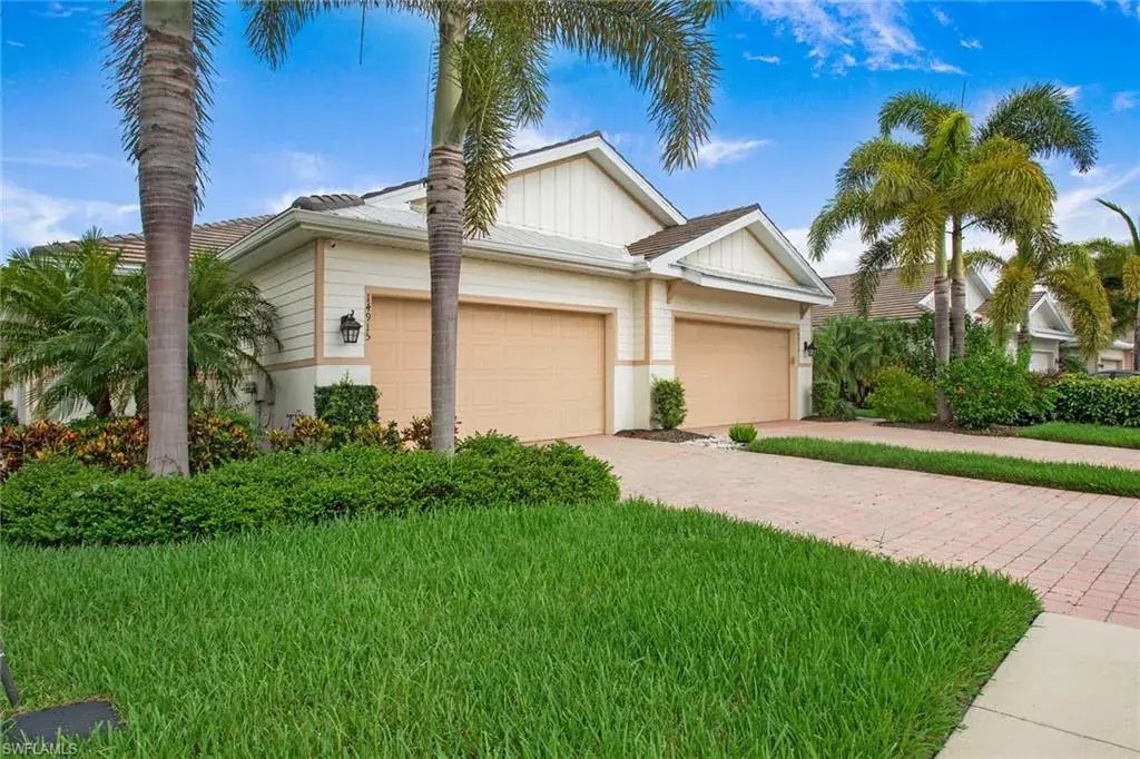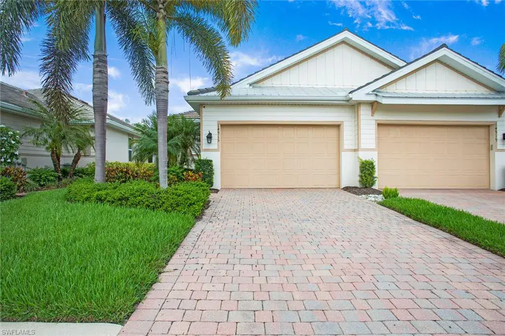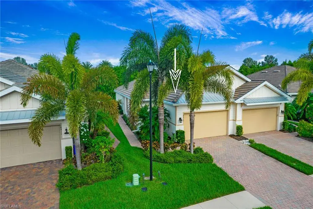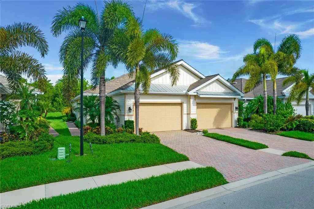 Incredible sunsets with this direct west-facing, immaculate, villa home! Loads of upgrades and room for a pool! This beautiful home is open, bright, inviting and is perfectly designed for seasonal use or full-time living in paradise. Featuring two bedrooms, two baths, a den/flex space, a two-car garage and expanded lanai. Enjoy luxurious finishes and features throughout. Completely turnkey, move-in ready. Community amenities include guarded gate, 22 lakes, one-mile long rowing lane, boat ramp, island club, fitness center, bocce ball courts, beach volleyball, tiki bar & café with food and beverage service, resort-style pool with lap lanes, fire pit, private Kontiki Island, stand-up paddleboards, kayaks and bicycles, tennis courts, pickleball courts, two dog parks, miles of walking/biking paths, basketball court, and Kid’s Cove with a tot lot. Located in between 5th Avenue and Marco Island, this is the perfect location if you want to be near shopping, dining and the beach.
