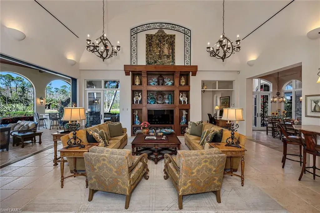 Immediate golf membership opportunity available! This custom home with its timeless details and architectural style reminiscent of the Italian countryside embodies elegance and simplicity. Perfectly situated on over an acre of land, enjoy spectacular private views over lake, golf course, and preserve. Drive through the bougainvillea-adorned porte-cochere that leads to a four-car garage motor court. Then, as you enter the home through the custom hand-scraped double doors, you are greeted by a soaring wall of glass in the two-story living room overlooking the pool. The study, with room for a spacious desk as well as additional seating, features a rich wood coffered beamed ceiling as well as French doors that lead to an intimate courtyard with vine-covered walls, that create the perfect retreat. Walk through the gallery past the walk-in wine cooler to the family room, which is flanked by the kitchen and breakfast nook on one side and opens up the expansive outdoor living area on the other. Additional features include a home theater, stone flooring, wood beam ceilings, a lighting control system and more. Truly exceptional! Located in the award-winning community of Mediterra.