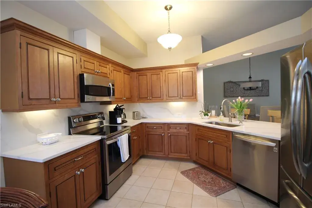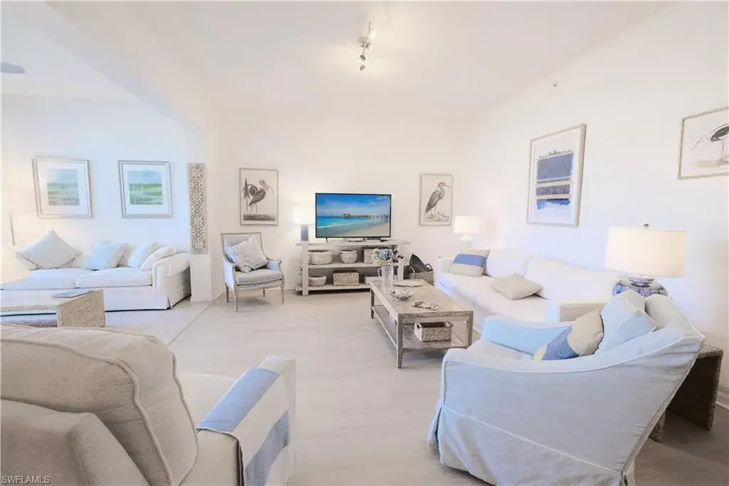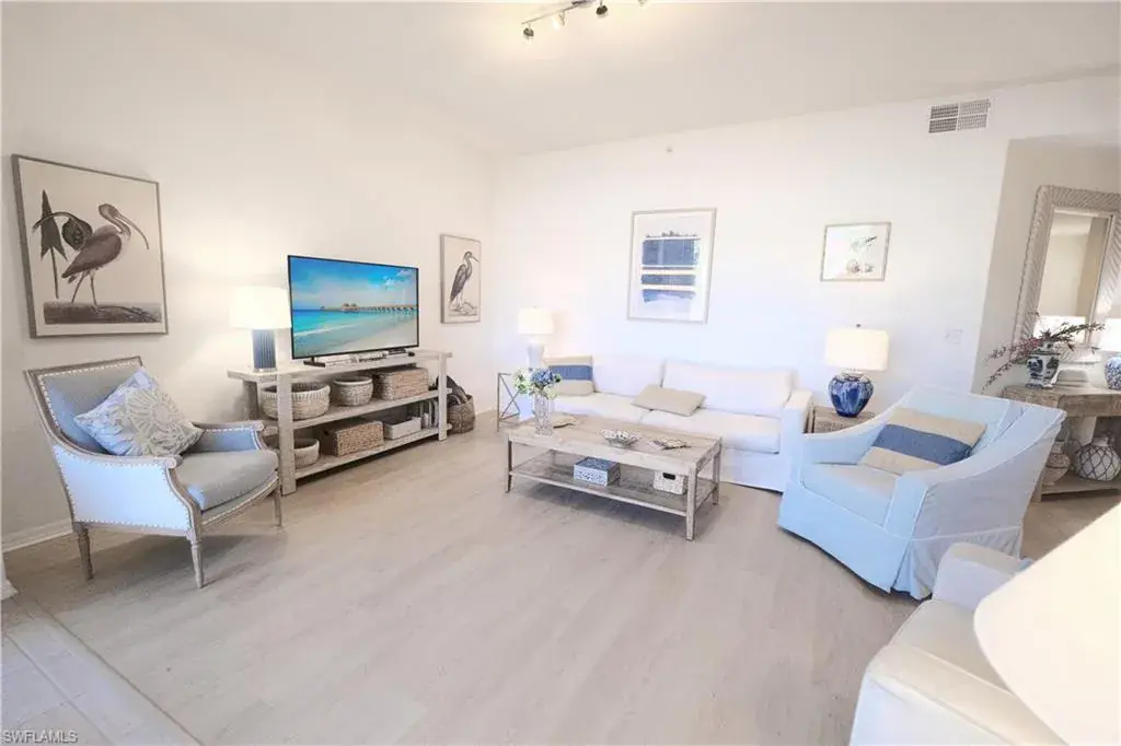 Make this sought after first floor unit in the desirable community of Pelican Marsh your new home in Naples Florida, a tropical paradise. This Clermont condo is very light bright and spacious, a 3 bedroom, 2 bath with over 1800 sq. ft. of living area with an attached garage. Owner recently installed a new quartz countertop, backsplash and brand new beautiful luxury vinyl plank flooring. AC – (October, 2025), Water Heater (Sept. 2025) Enjoy the warm sun in the Florida room offering additional living area with its enclosed lanai and sliders that open with view of the lush landscaping, pond and neighborhood pool. Offered fully turnkey furnished (with several exceptions) or furniture can be removed if buyer wishes. The Pelican Marsh Golf Club is an optional membership club and adjacent to Clermont. Only a 3 minute walk to the Community Center where residents can enjoy all of the resort style amenities including a very active tennis and pickleball program, dine at the Courtside Cafe, a busy schedule of Social activities, play bocce, or work out in the state of the art fitness center. Fill your social calendar with the endless list of activities planned by the social director and enjoy peaceful walks along miles of beautiful paths. The coveted community of Pelican Marsh is the ideal location, 5 access points, all gated, only 1.5 miles to Vanderbilt Beach, near upscale shopping at Mercato and Waterside and easy drive to 5th Avenue. Come and see for yourself!