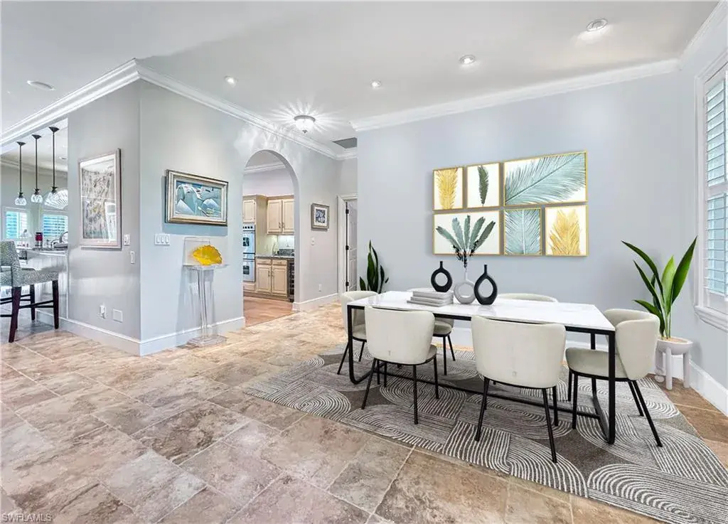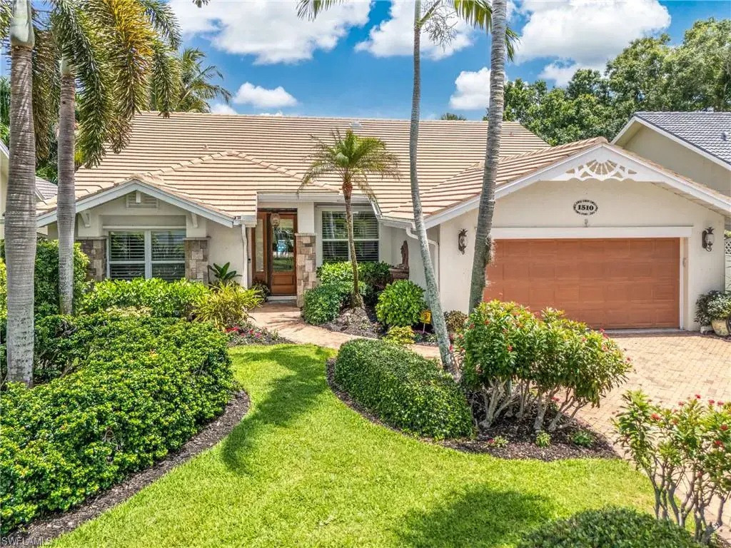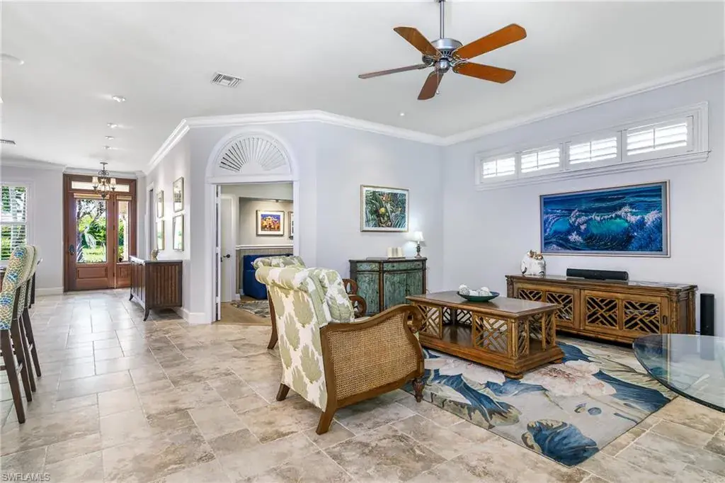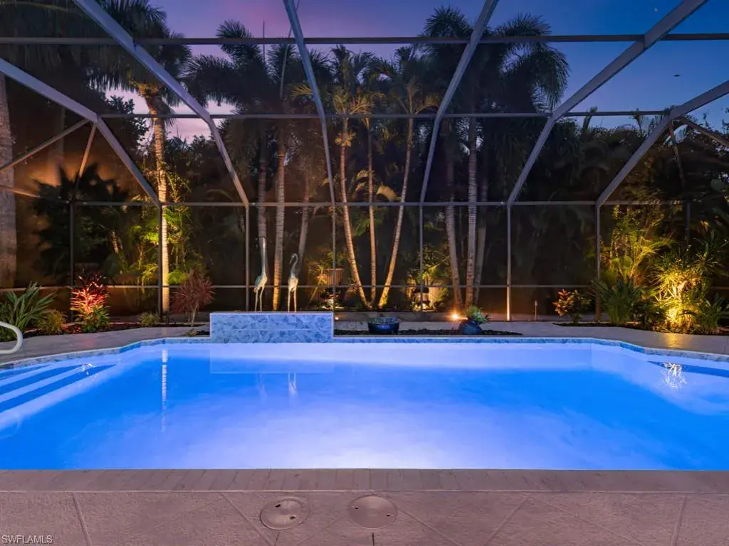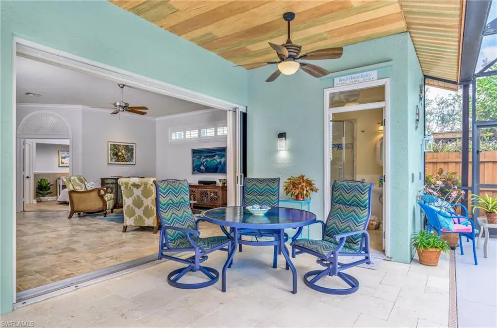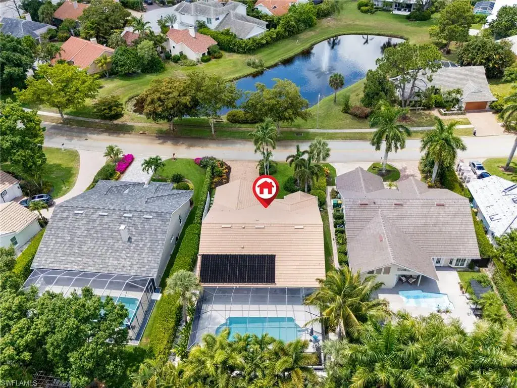 LOCATION! Just reduced $75K Bike to Seagate beach or Waterside Shops, Royal Poinciana CC or CC of Naples from this charming residence, minutes to Venetian Village, Mercato or Old Naples! Built for entertaining your family and friends with wide open floorplan, this residence lives large, open and bright with 10′ ceilings! Radiating an upscale Key West ambiance with Ashlar-pattern Italian porcelain tile, code windows and doors, plantation shutters and 6.5″ base and crown moldings. Pocket sliding doors hide to access a private expansive pool deck with a 36′ long caged saltwater lap pool, electric and solar heat and a Solar winter blanket, ensuring year-round enjoyment. Fenced on two sides, you are surrounded palm & flowering fruit trees with night time landscaping lighting. The expansive 41′ covered lanai features faux wood ceilings and lush landscaping. The pool and deck were upgraded in Feb ’24 with a new Pentair light system, re-surfacing, waterline tile, and coping. The huge kitchen is a gourmet chef’s dream! Gas and electric ranges, Subzero Refrigerator, Wine cooler, Bosch DW & Monogram double ovens. Two breakfast bars have granite/quartz counters. With charming cottage curb appeal, this residence lives larger than the square footage shows, nestled in an enclave of 52 single-family homes offering a community pool and tennis, excellent schools, meandering streets and sidewalks, ponds, and low fees. Other features include a Brick paver driveway, a newer roof 2019, AC 2021, a monitored alarm system, a professional lighting system for art, new pool screens and a high-end surround sound system. Bedroom 2 has a custom built-in office space, a queen-size Murphy system & tons of storage with custom closets throughout. New Pool screens and no storm damage or flooding. Engineered wood floors in kitchen and BR #3. Home inspections completed and available upon request. Don’t let the small square footage fool you! Seeing is believing especially at night!