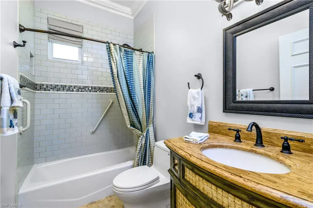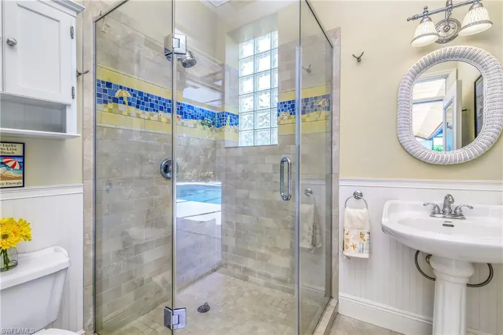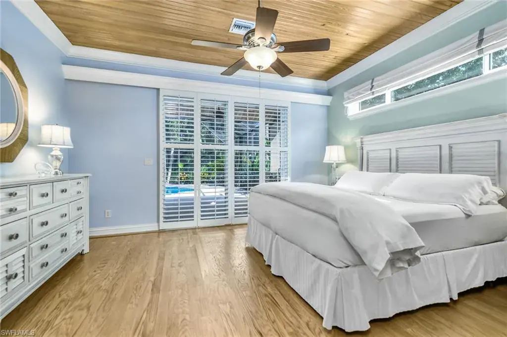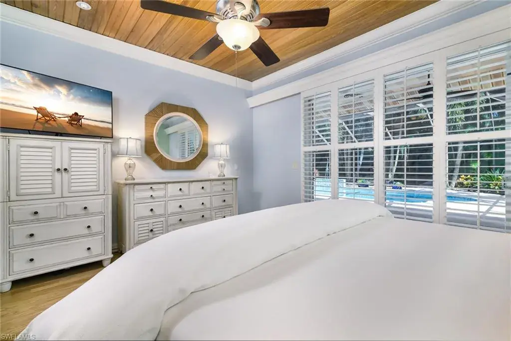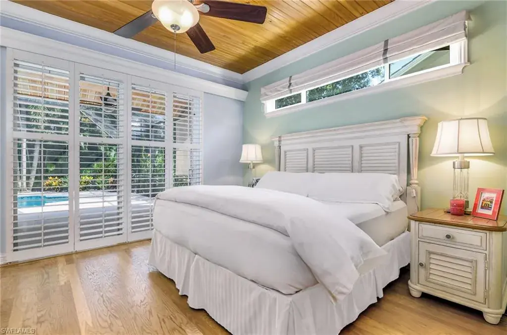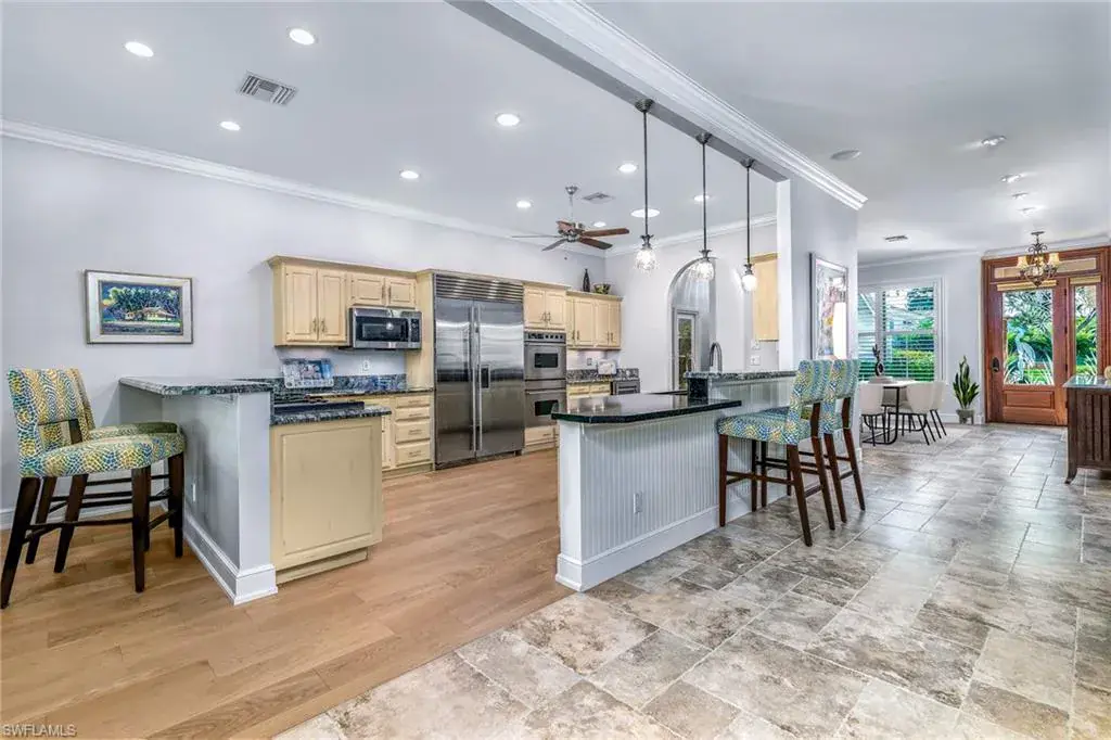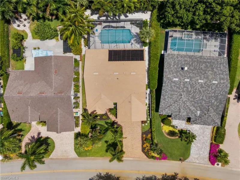 LOCATION! Just reduced $75K Bike to Seagate beach or Waterside Shops, Royal Poinciana CC or CC of Naples from this charming residence, minutes to Venetian Village, Mercato or Old Naples! Built for entertaining your family and friends with wide open floorplan, this residence lives large, open and bright with 10′ ceilings! Radiating an upscale Key West ambiance with Ashlar-pattern Italian porcelain tile, code windows and doors, plantation shutters and 6.5″ base and crown moldings. Pocket sliding doors hide to access a private expansive pool deck with a 36′ long caged saltwater lap pool, electric and solar heat and a Solar winter blanket, ensuring year-round enjoyment. Fenced on two sides, you are surrounded palm & flowering fruit trees with night time landscaping lighting. The expansive 41′ covered lanai features faux wood ceilings and lush landscaping. The pool and deck were upgraded in Feb ’24 with a new Pentair light system, re-surfacing, waterline tile, and coping. The huge kitchen is a gourmet chef’s dream! Gas and electric ranges, Subzero Refrigerator, Wine cooler, Bosch DW & Monogram double ovens. Two breakfast bars have granite/quartz counters. With charming cottage curb appeal, this residence lives larger than the square footage shows, nestled in an enclave of 52 single-family homes offering a community pool and tennis, excellent schools, meandering streets and sidewalks, ponds, and low fees. Other features include a Brick paver driveway, a newer roof 2019, AC 2021, a monitored alarm system, a professional lighting system for art, new pool screens and a high-end surround sound system. Bedroom 2 has a custom built-in office space, a queen-size Murphy system & tons of storage with custom closets throughout. New Pool screens and no storm damage or flooding. Engineered wood floors in kitchen and BR #3. Home inspections completed and available upon request. Don’t let the small square footage fool you! Seeing is believing especially at night!