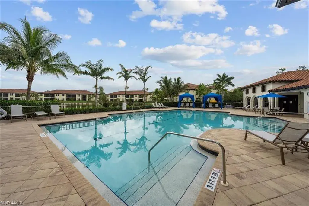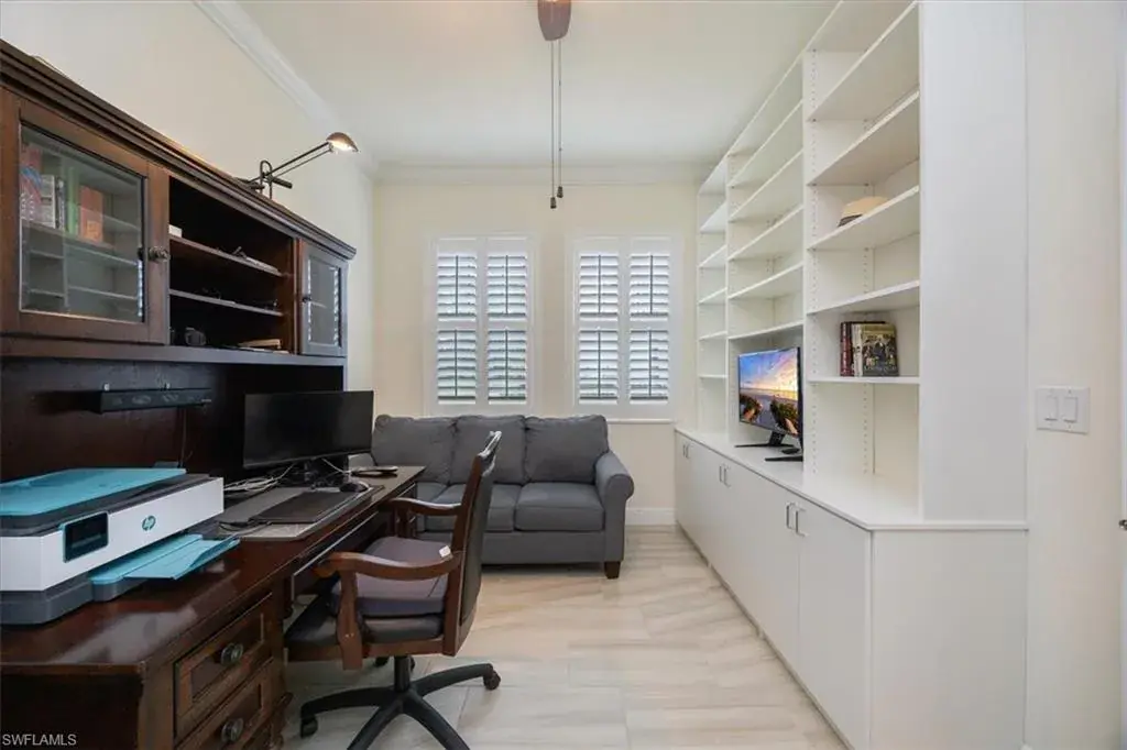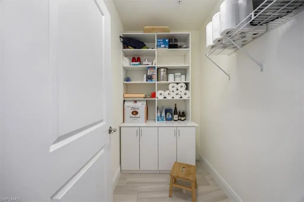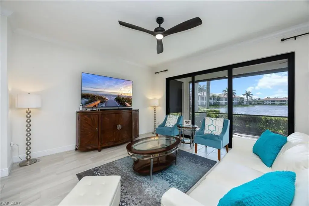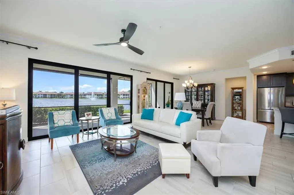 Experience elevated living in North Naples! Step into a lifestyle of comfort and convenience with this captivating 1800+ sq ft first floor condominium. Boasting 2 bedrooms, a den and 2 bathrooms, — plus a large walk-in storage room with built in shelving. Den has the same built-in shelves as the storage room. Spacious laundry room with beautiful wood cabinetry (that matches the kitchen) for even more storage. This home welcomes you with its neutral palette and refined finishes. The kitchen is a true highlight, featuring rich wood cabinets, large island, elegant granite countertops, and modern stainless steel appliances. Plenty of separation between the master bedroom and guest bedroom. Relax and entertain in the spacious great room, bathed in natural light, with sliding glass doors opening to your private lanai overlooking Butler Lake. You’ll appreciate the added benefits of impact windows and doors and a location not in a flood zone, all complemented by a two-car attached garage. Livingston Lakes, a pet-friendly, gated community nestled in the heart of North Naples, offers the ease of condominium living with resort-style amenities. With only 230 homes, this charming neighborhood provides a sense of intimacy and community. Enjoy a sparkling pool with lap lanes and cabanas, two convenient built-in gas grills, a stylish clubhouse with a catering kitchen, a state-of-the-art fitness center, and a cozy outdoor fireplace and fountain—all with remarkably low fees! Your new home is just steps away from North Collier Regional Park, offering miles of scenic nature trails, premier sports facilities, a thrilling water park, and Golisano Children’s Museum. Plus, you’re less than five miles from the breathtaking white sand beaches of the Gulf. With endless shopping and dining options, and convenient access to I-75 and multiple international airports, Livingston Lakes is truly the perfect place to call home, whether year-round or for frequent, cherished visits.