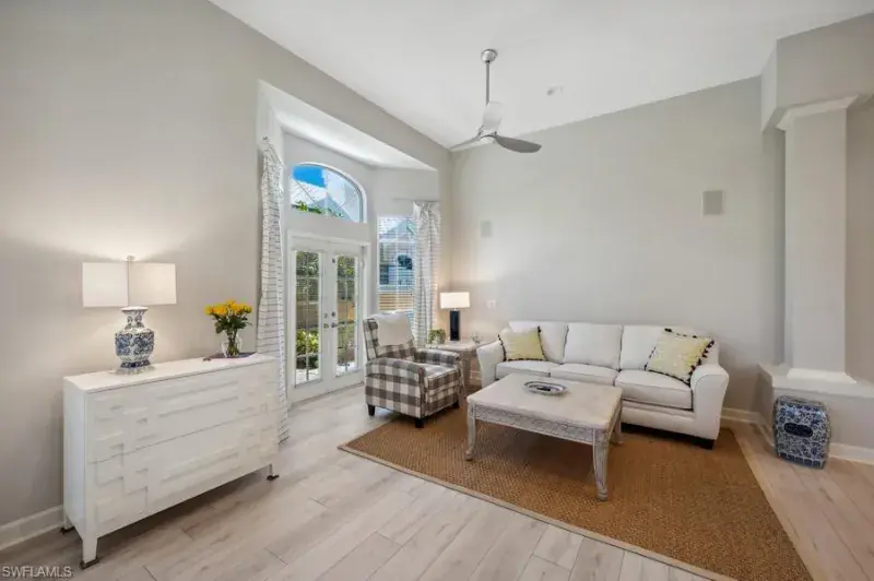 This remodeled detached villa (2022) in the sought after Audubon Country Club is located minutes from the pristine beaches of the Gulf of Mexico. This home has the best view overlooking 5th hole green & a pond w/a SW exposure & the most spectacular sunsets. A new kitchen w/LG appliances,2 new bathrooms, new flooring,new light fixtures, new hot water heater, fresh paint, new molding, new AC (2020),newer roof,ELECTRIC rolldown hurricane shutters & a reverse osmosis system all come w/this bright & spacious home. ACC was recently awarded the prestigious “Distinguished Club” distinction by BoardRoom Magazine.Amenities include an 18 hole Troon championship golf course, Tennis, Pickleball courts, Croquet & Bocce, a state of the art fitness center, formal dining room & casual grill room.Enjoy cocktails@pool bar/cafe; this scenic community has 755 acres w/58% dedicated to natural preserve w/a bayside boardwalk (w/kayaks available).The main clubhouse has dining & a banquet room.The location is ideal-25 min from RSW Airport,2 mi from Mercato & a short drive to Olde Naples.FULL GOLF MEMBERSHIP is available (social is required). A beautiful home…AND it’s move-in ready!