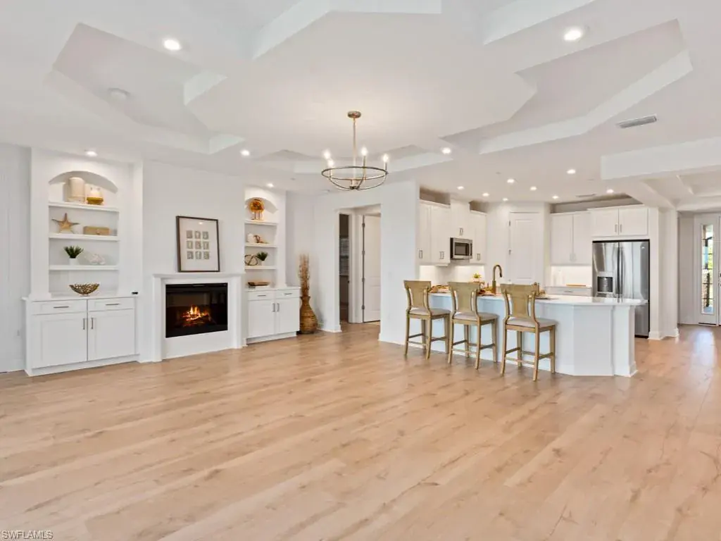 The home boasts impact glass, wood look flooring, quartz counters, larger kitchen cabinets, fireplace, built ins, stainless appliances, trey ceilings, frameless glass shower, high end faucets and fixtures and so much more. A true must see.