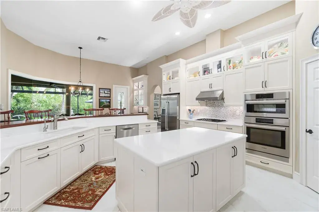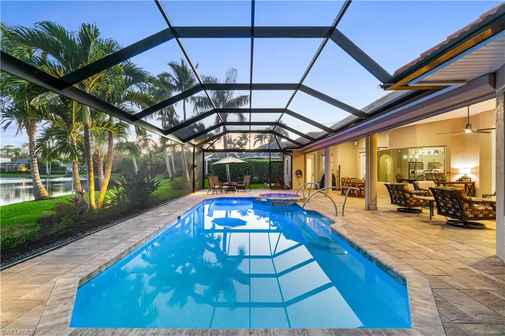H14174 Beautifully renovated home with spectacular wraparound long lake views offered in North Naples’ coveted “Audubon Golf & Country Club!” This immaculate home features a 3-CAR GARAGE, new hurricane impact windows, whole house generator in 2020, 500 gal in-ground propane tank in 2020, new water heater in 2017, new HVACs in 2022 & new central vac in 2022. Expansive lanai offers a solar heated pool/spa resurfaced in 2021 & a new super screen picture window enclosure installed in 2021 to capture the unobstructed lake & preserve views. Fantastic open floor plan has 3 beds + a den/3.5 baths & soaring high ceilings. Chef’s kitchen was recently renovated in 2022 & includes white cabinetry, quartz counters, dual ovens, built-in wine cooler, gas cook top & beautiful white backsplash. Primary suite offers a renovated spa-like bathroom including a free-standing tub, dual vanities & an island with shelving/cabinetry for extra storage. Audubon is perfectly located 5-minutes from Mercato & world-class beaches, with gated/guarded entry, 18-hole championship Golf Course, tennis, pickleball, Bayside boardwalk, newly renovated clubhouse with dining & 2nd new spectacular poolside club & café.