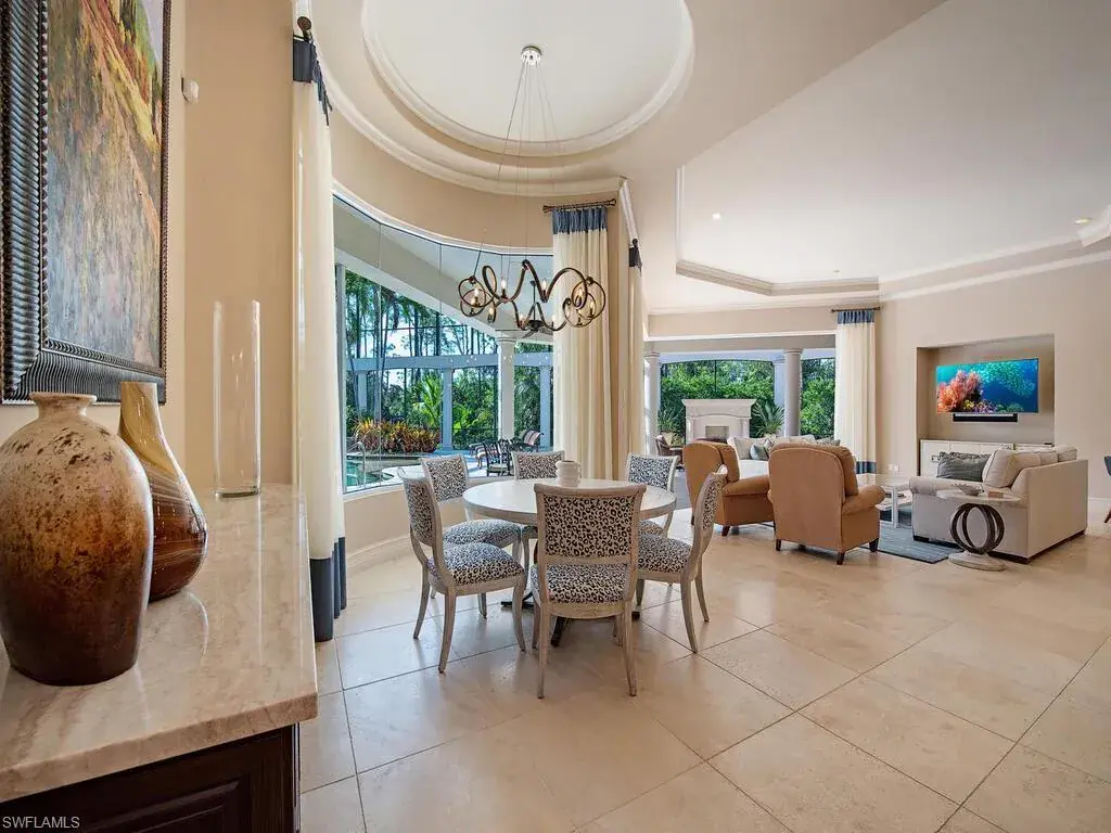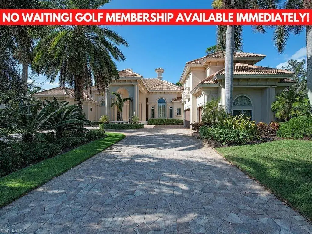 NO WAITING GOLF MEMBERSHIP SLOT AVAILABLE IMMEDIATELY!! An opulent porte-cochere welcomes you to the four-car motor court of this exquisite estate. Travertine floors flow throughout the main living areas, highlighted by coffer & tray ceilings, lighted niches & delicate crown molding. Abundant upgrades include a water filtration system, sound system, Lutron lights & climate controlled wine room. Soaring ceilings, majestic columns, gas fireplace & disappearing sliders punctuate the formal living room. The expansive kitchen boasts quartzite countertops, Subzero & Wolf appliances, two dishwashers, six-burner gas stove, pot filler & center island with sink. The comfortable family room features disappearing sliders overlooking tropical views. The home office offers handsome wood built-ins & wood floors. The master retreat features a sitting area, stacking sliders & stunning spa-inspired master bath with dual vanities, walk-in closets, jetted tub & walk-in shower. Ascend the staircase to two ensuite bedrooms, exercise room, rec room with wet bar, home theater & veranda. The screened lanai surrounds the lagoon pool with sun shelf & elevated spa. The summer kitchen features teak cabinetry, two sinks & an expansive bar. ROOF TWO YEARS OLD.