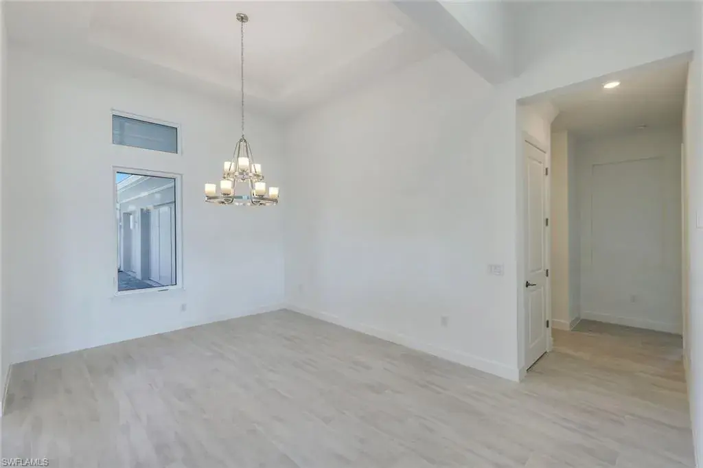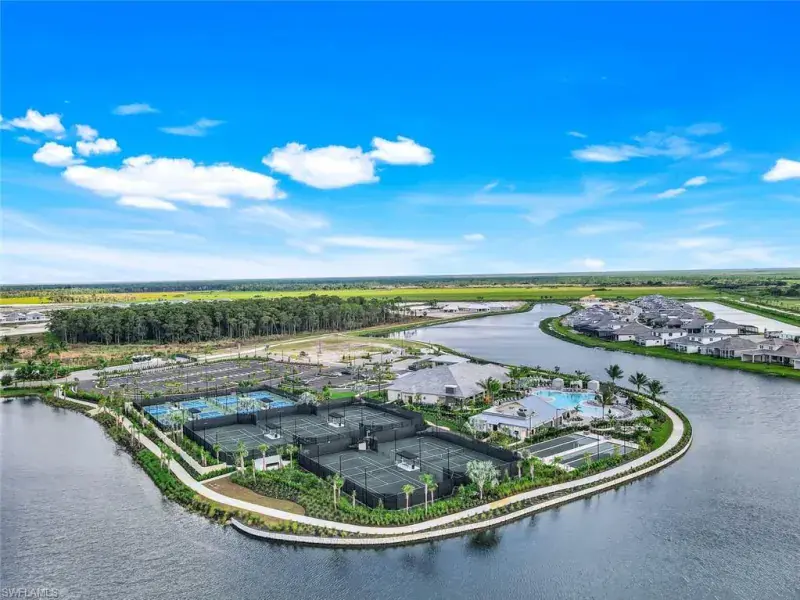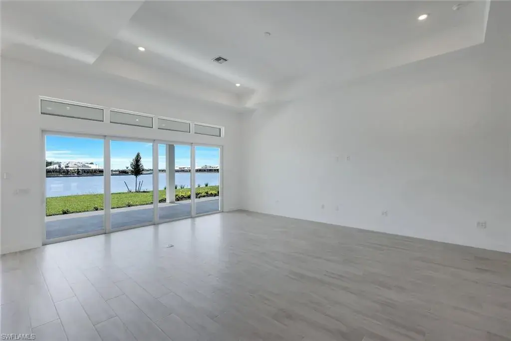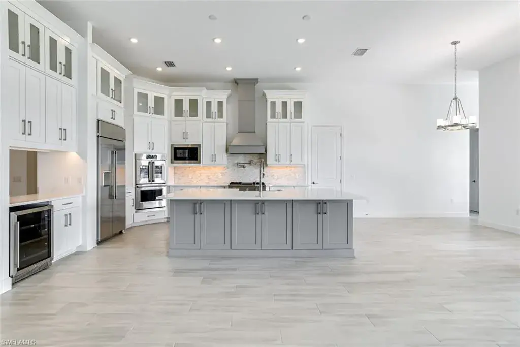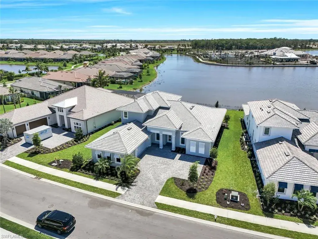 Showcasing a recent $25,000 custom upper-cabinet upgrade, this elegant Beacon with Loft, featuring a refined coastal elevation in timeless hues. Its striking curb appeal opens to a modern floor plan with porcelain tile flooring, 12-foot ceilings, and 8-foot solid-core doors. Impact glass ensures beauty, security, and tranquility. The spacious living area, prepped for a gas or electric fireplace, offers comfort and flexibility. The Chef’s Kitchen boasts shaker cabinetry, under-cabinet lighting, a farmhouse sink, large island, GE Monogram appliances, griddle, and pot filler, 24-inch upper cabinets with glass doors including custom molding will be installed soon. The primary suite features bay window views, two walk-in closets, and a spa-style bath with dual sinks and an oversized dual shower-head shower. Upstairs, the loft includes a private suite, generous living space, and wet bar—ideal for guests or versatile living. Sliding doors lead to a lanai with serene water and palm views, prepped for a custom pool and outdoor kitchen. Nestled in the prestigious Esplanade by The Islands on a prime water lot, the community’s luxurious amenities. Wellness Center, Bahama Bar & Grill, Dog Park, Massage Treatment Room, Fitness Center, Pickleball, Tennis, Bocce Ball, and Resort-Style Pool & Spa with a Culinary Center planned. Enjoy an exceptional upscale lifestyle. Close to dining, shopping, entertainment, downtown Naples, and Marco Island, this home offers refined living. Schedule your private showing today.