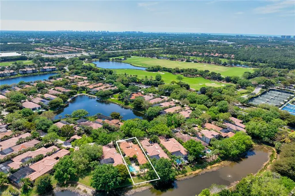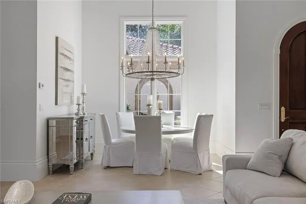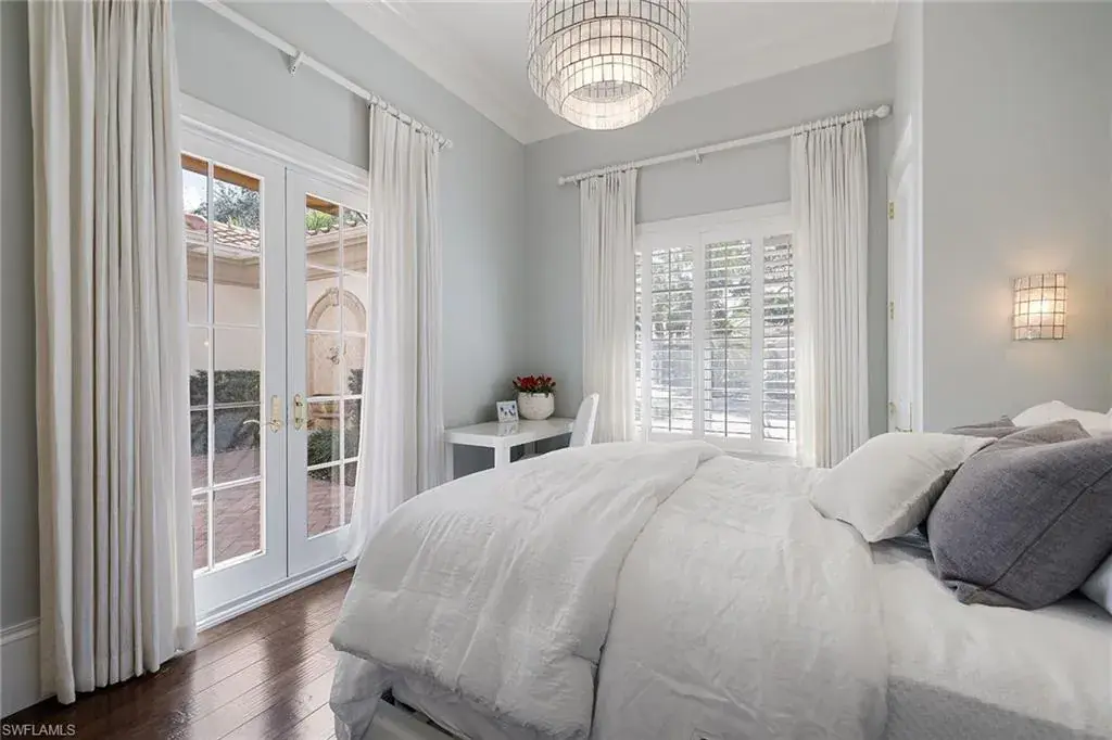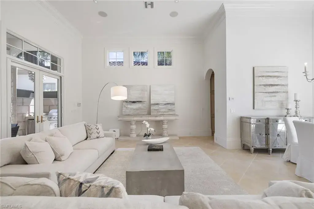 This luminous and generously spaced residence features hurricane-impact windows and doors, a whole-house generator, electric screens at outdoor living area all of which are complemented by a new roof installed in 2018. This exquisite three-bedroom, three-bath home, fully furnished and move-in ready. As you drive in the Villoresi neighborhood of Mediterra, a beautiful fountain greets you as you drive along the tree-lined streets. Inside, custom light fixtures and mirrors adorn the interiors, adding an air of sophistication. Go outdoors through charming French doors onto the airy lanai, a glistening pool and scenic water view, a serene haven for leisure and hosting. Take advantage of outdoor entertaining with a built-in outdoor kitchen featuring a high-end gas grill. Indoors, the kitchen is a culinary enthusiast’s delight, showcasing stunning granite countertops and premium Viking and Sub-Zero appliances. Listen to the water trickling down the fountain through French doors that open to the front courtyard. All French doors featuring retractable screens allowing soft breezes to flow through the home. Escape to the primary suite where soft Venetian plaster walls create a peaceful haven. Additional features include a whole-house generator, a tankless water heater, epoxy flooring in the garage, crown molding throughout and plantation shutters, this home is a must see! Enjoy your toes in the sand and golden sunsets at Mediterra’s fully renovated private Beach Club along the Gulf! Imagine arriving to have your car valet parked and and lounge chairs and umbrellas waiting for your arrival or set up upon your request. With 10,000 square feet of space, the upper level offers indoor and alfresco dining, a full bar, swimming pool along with lockers and dressing areas for changing. Spend the day and enjoy dinner while watching the sun set in the distance. In the award-winning community of Mediterra where you can have it all with 36 holes of Tom Fazio championship golf, Har-Tru tennis courts, pickleball, bocce and a private beach club!