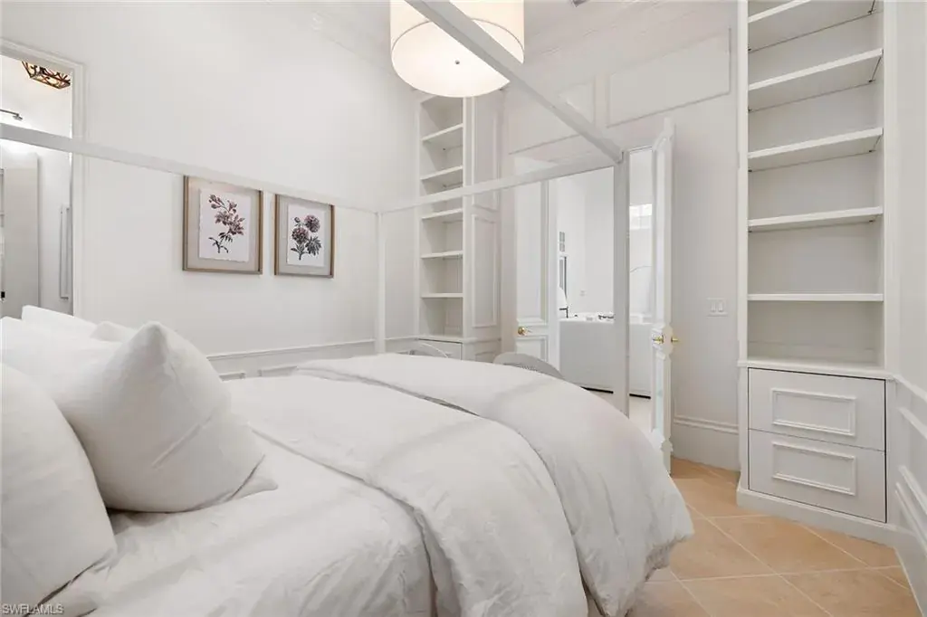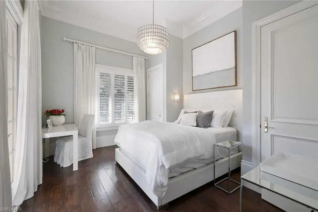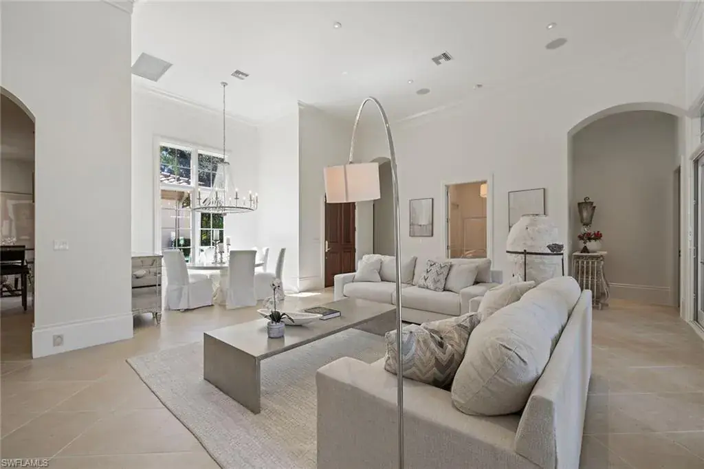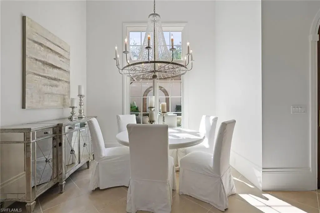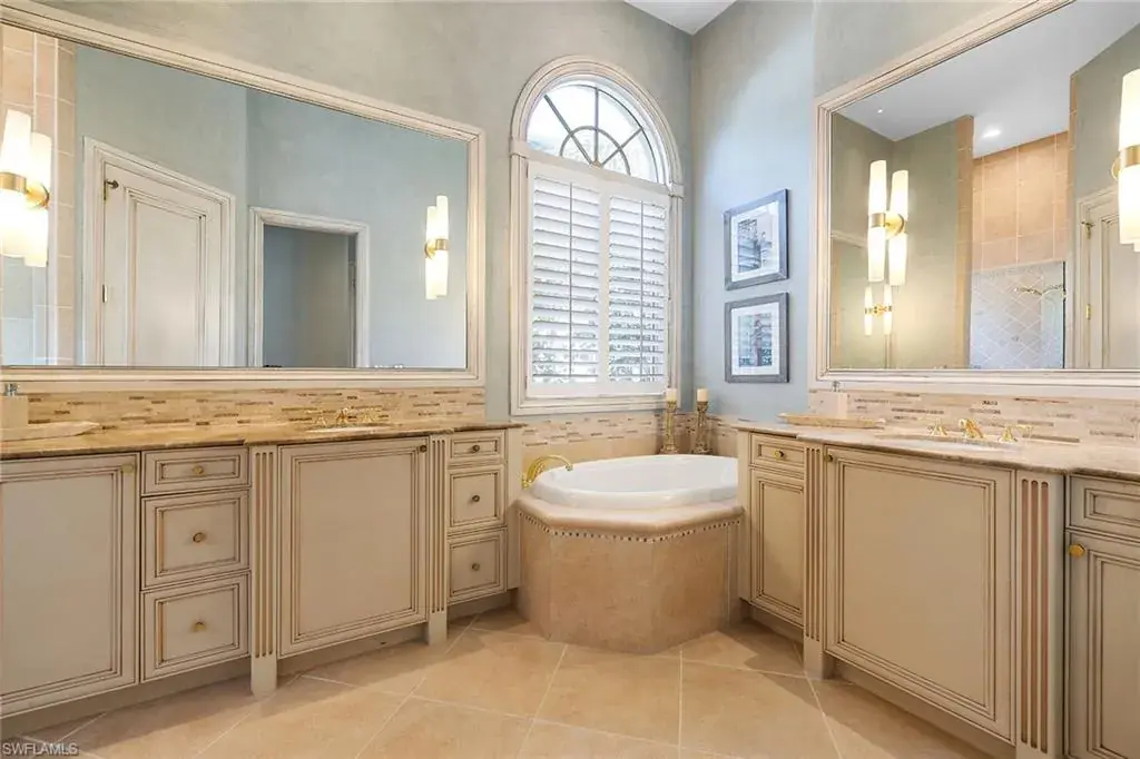 This luminous and generously spaced residence features hurricane-impact windows and doors, a whole-house generator, electric screens at outdoor living area all of which are complemented by a new roof installed in 2018. This exquisite three-bedroom, three-bath home, fully furnished and move-in ready. As you drive in the Villoresi neighborhood of Mediterra, a beautiful fountain greets you as you drive along the tree-lined streets. Inside, custom light fixtures and mirrors adorn the interiors, adding an air of sophistication. Go outdoors through charming French doors onto the airy lanai, a glistening pool and scenic water view, a serene haven for leisure and hosting. Take advantage of outdoor entertaining with a built-in outdoor kitchen featuring a high-end gas grill. Indoors, the kitchen is a culinary enthusiast’s delight, showcasing stunning granite countertops and premium Viking and Sub-Zero appliances. Listen to the water trickling down the fountain through French doors that open to the front courtyard. All French doors featuring retractable screens allowing soft breezes to flow through the home. Escape to the primary suite where soft Venetian plaster walls create a peaceful haven. Additional features include a whole-house generator, a tankless water heater, epoxy flooring in the garage, crown molding throughout and plantation shutters, this home is a must see! Enjoy your toes in the sand and golden sunsets at Mediterra’s fully renovated private Beach Club along the Gulf! Imagine arriving to have your car valet parked and and lounge chairs and umbrellas waiting for your arrival or set up upon your request. With 10,000 square feet of space, the upper level offers indoor and alfresco dining, a full bar, swimming pool along with lockers and dressing areas for changing. Spend the day and enjoy dinner while watching the sun set in the distance. In the award-winning community of Mediterra where you can have it all with 36 holes of Tom Fazio championship golf, Har-Tru tennis courts, pickleball, bocce and a private beach club!