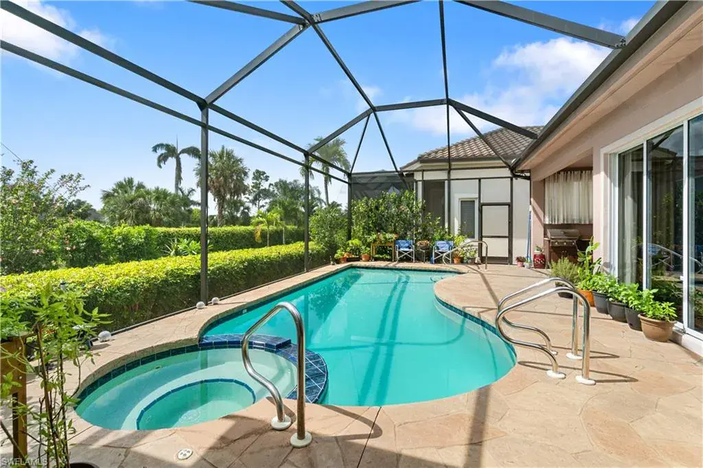 H10556 Beautiful home with spectacular preserve & golf course views offered in North Naples’ coveted “Audubon Golf & Country Club!” NO WAITLIST FOR GOLF! Offers prime Southeastern exposure for optimal sun on the expansive pool deck with a serene pool/spa & outdoor kitchen with a built-in grill. This light, bright & airy, home is finely appointed with soaring high ceilings, tile floors, plantation shutters throughout, 250-gal propane tank, a NEW ROOF in 2015, NEW HVAC IN 2021 & 2022 & a freshly repainted exterior! Spacious kitchen features granite counters, stainless steel appliances & white cabinetry. Fantastic open & split bedroom floor plan with 4 bedrooms including a spacious master suite with a spa-like bathroom. Relax & unwind in the fully screened-in pool & lanai with ample lounging & dining space, overlooking the golf course. This oasis is lushly landscaped for ultimate privacy. “Audubon Country Club” is perfectly located 5-min from Mercato & SWFL’s world-class beaches, with gated/guarded entry, 18-hole championship Golf Course, tennis, pickleball, Bayside boardwalk, clubhouse with dining & 2nd brand-new spectacular poolside club/café & fitness center.